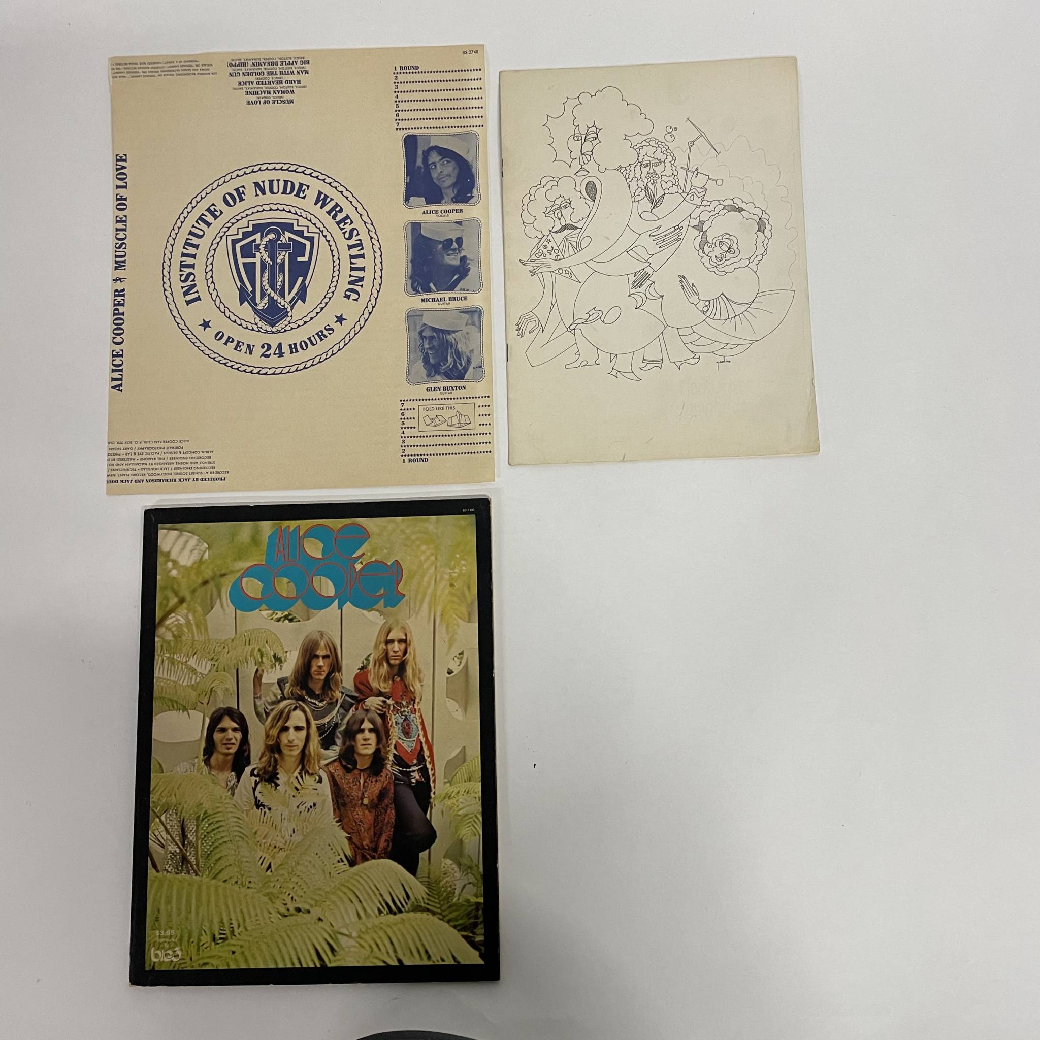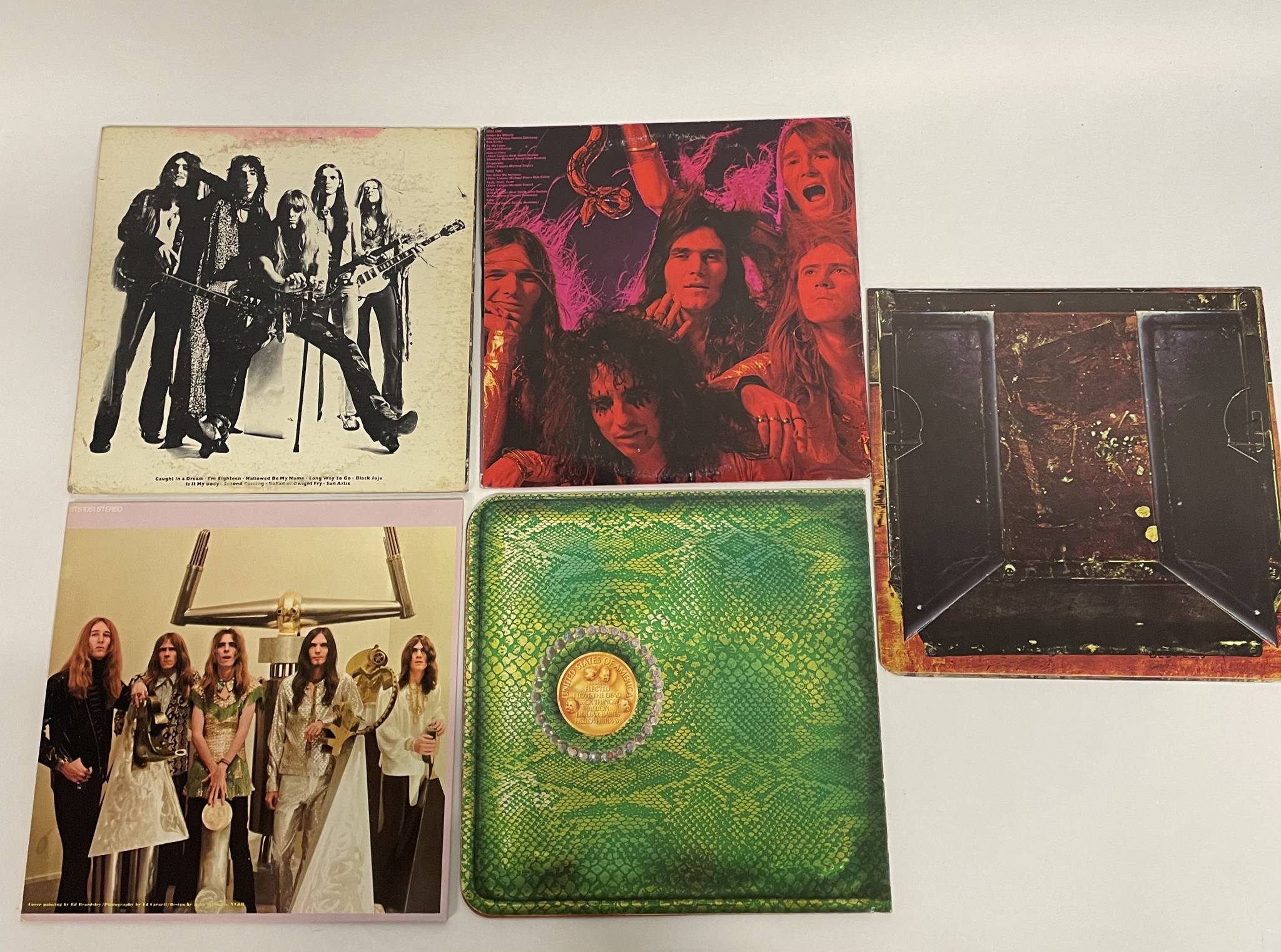 Ensemble de six albums : Killer, School's Out, Billion Dollar Babies, Carton complet : Muscle of love avec live, Pretties for you : Press USA 1972, Love it to death 1971 (mauvais état).