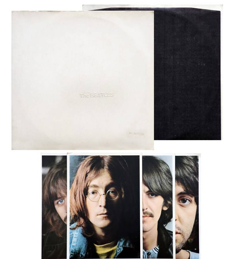 The Beatles : White Album Cat: SMO 2951/52 FR/1968 Top Opening 4 Glossy Photos and Poster The Beatles Embossed Letters N° 00383135 in relief VG++