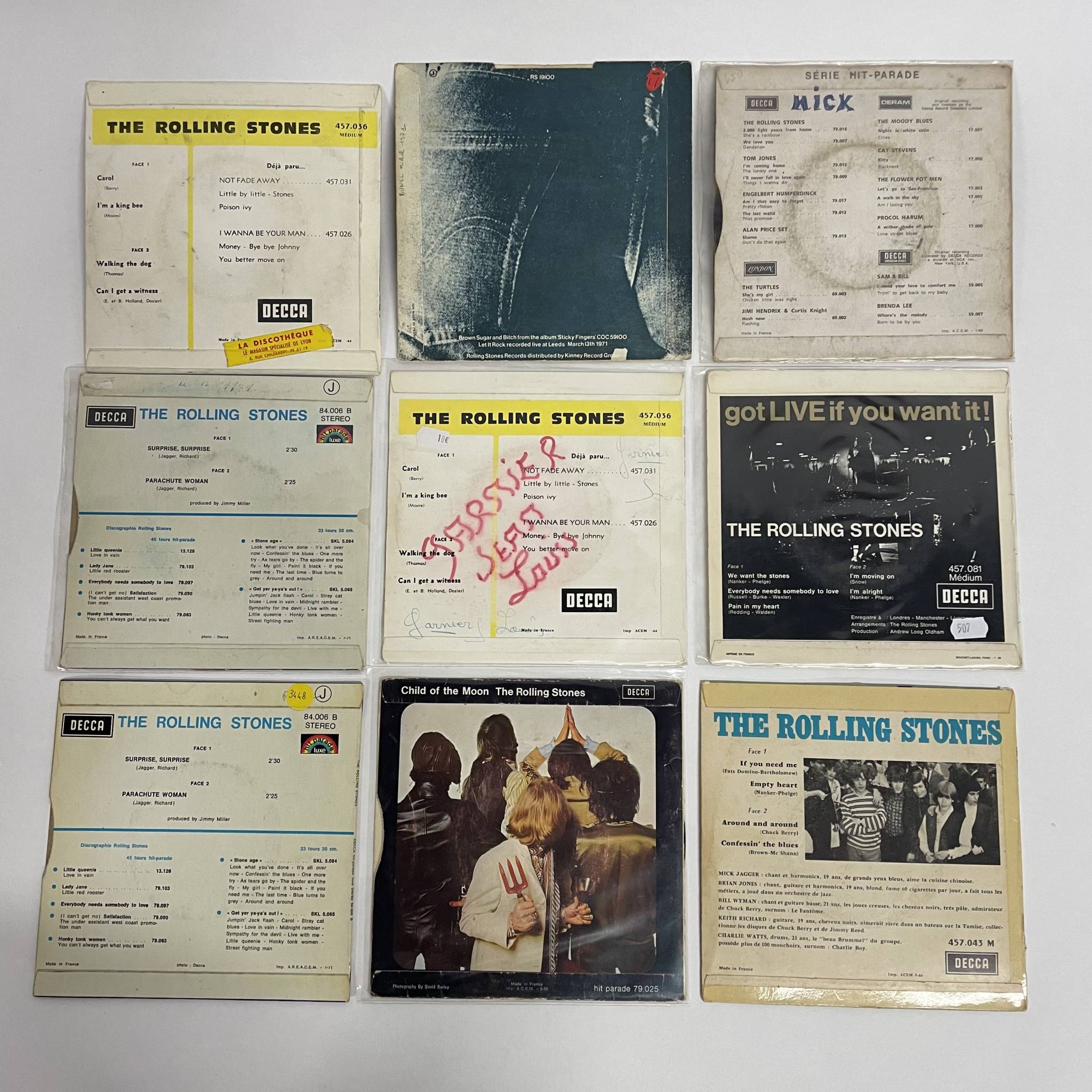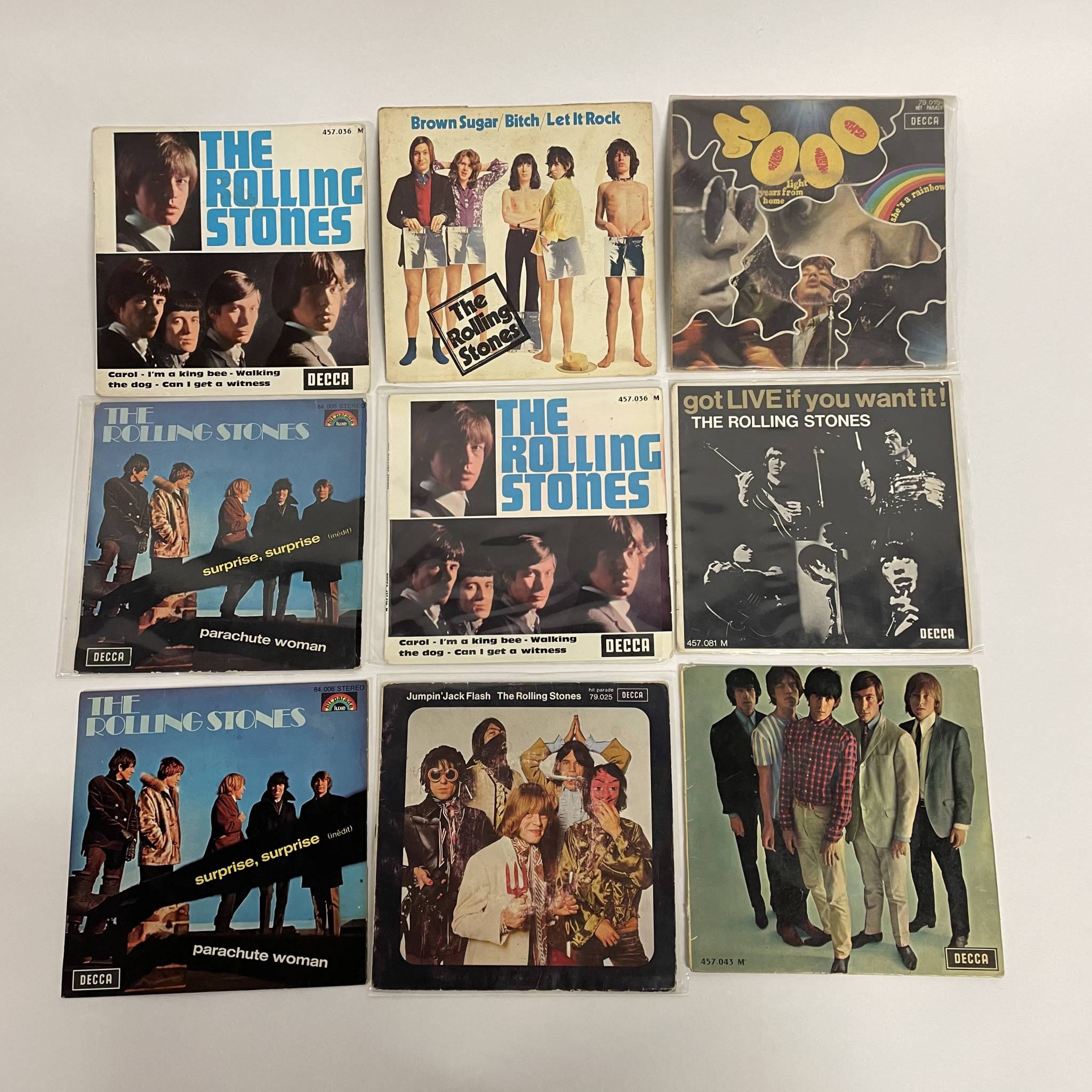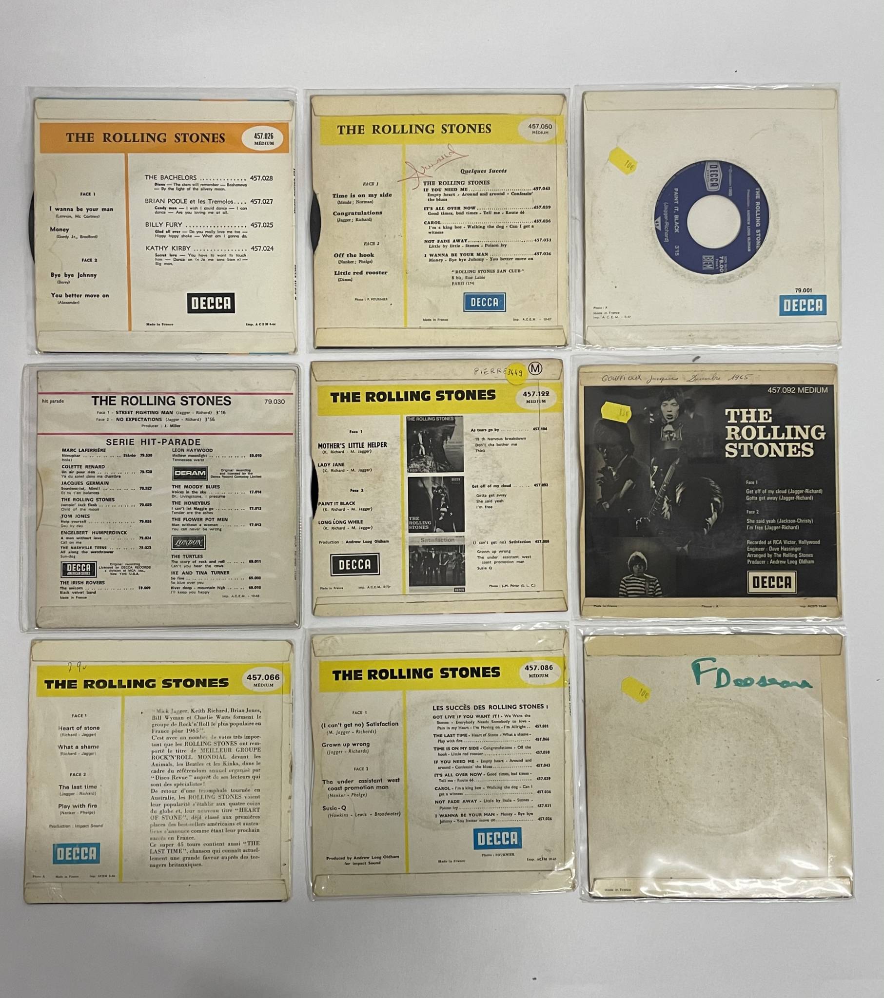 Ensemble de 18 vinyles 45 tours.