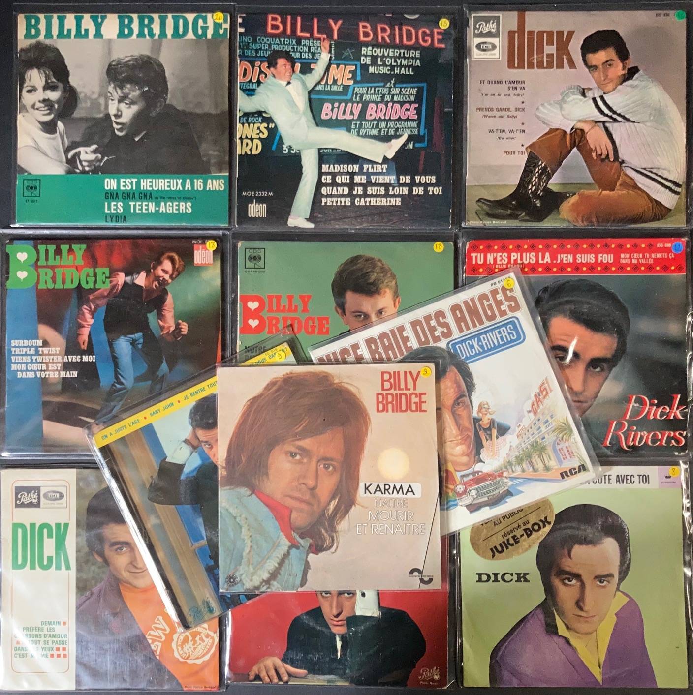 Lot de 12 x 45 tours de divers albums de Billy BRIDGE & Dick RIVERS.