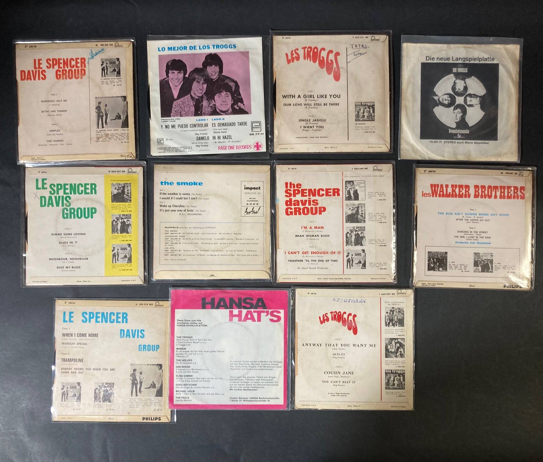 Lot de 11 x 45 tours de divers groupes anglais : The SPENCER DAVIS GROUP, The WALKER BROTHERS, The SMOKE, The TROGGS,..