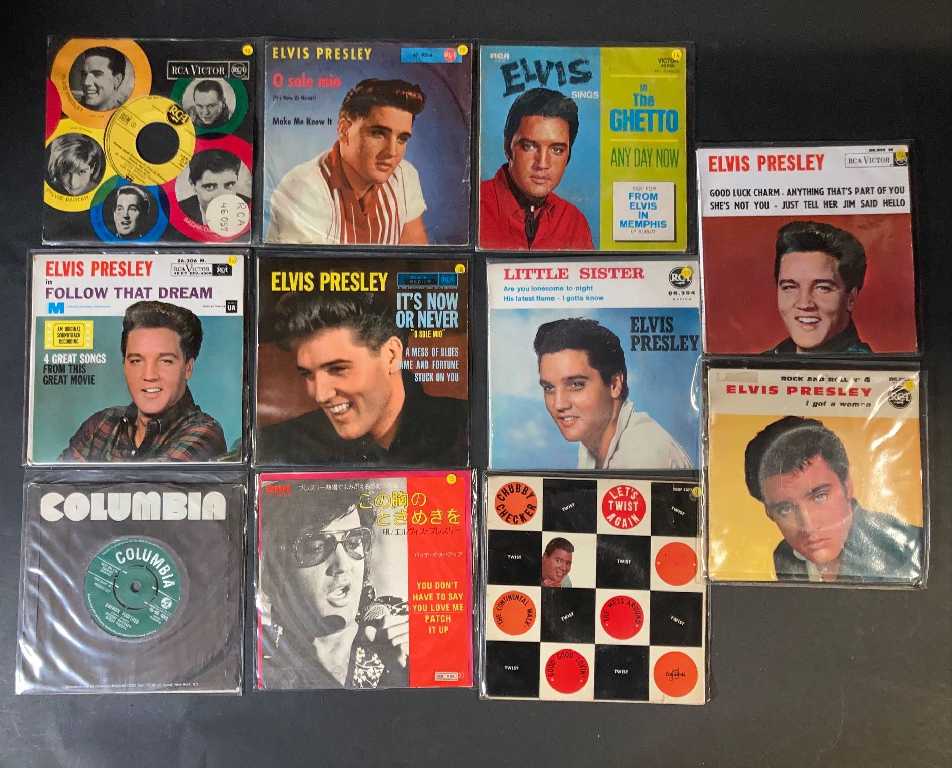 Lot de 20 x 45 tours de Elvis PRESLEY et Chubby CHECKER.