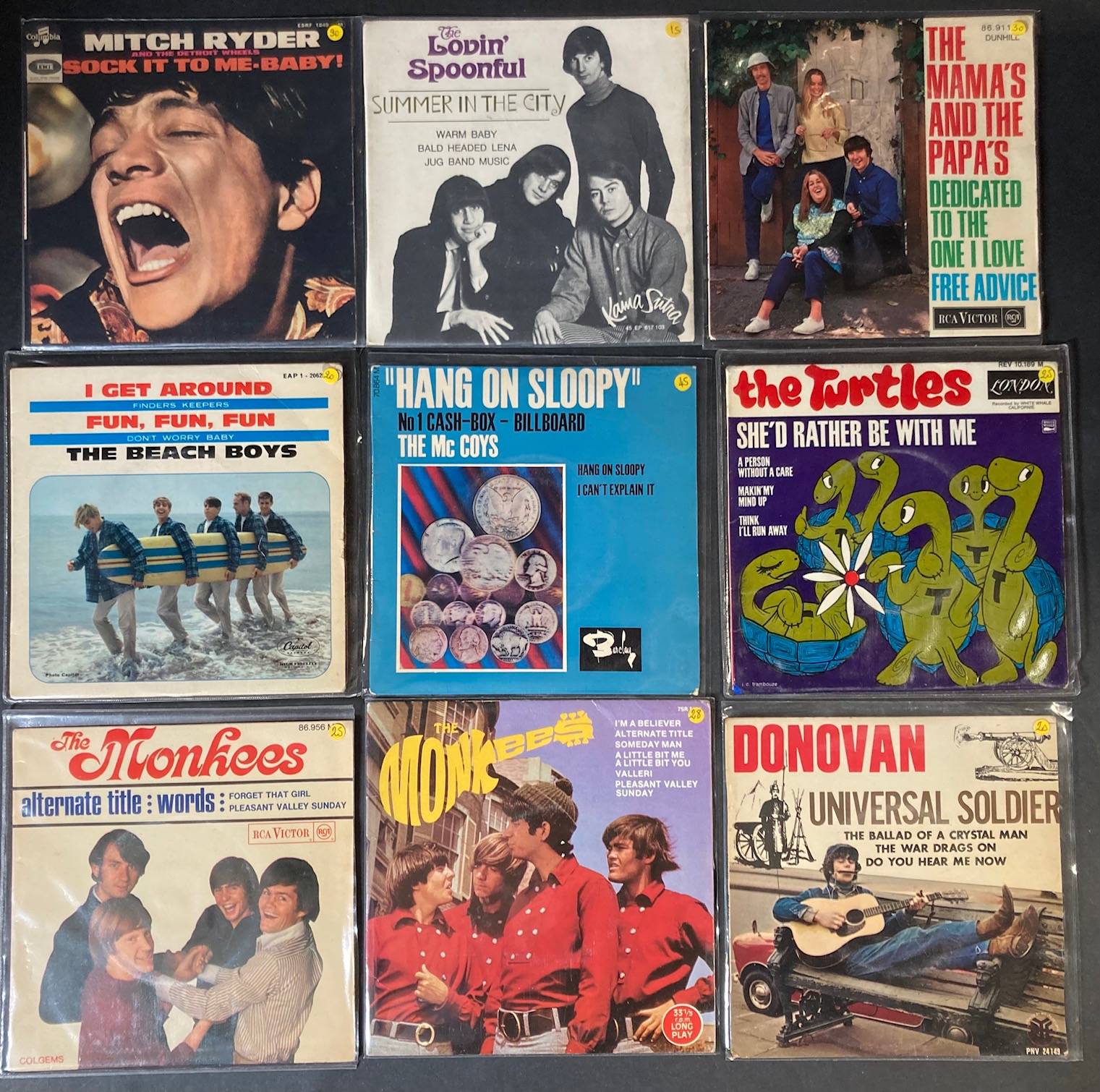 The MAMA'S and The PAPA'S, The LOVIN SPOONFUL, The BEACH BOYS, WALLACE COLLECTION, SHOCKING BLUE, The TURTLES, The MONKEES, DONOVAN, MITCH RYDER and The DETROIT WHEELS..