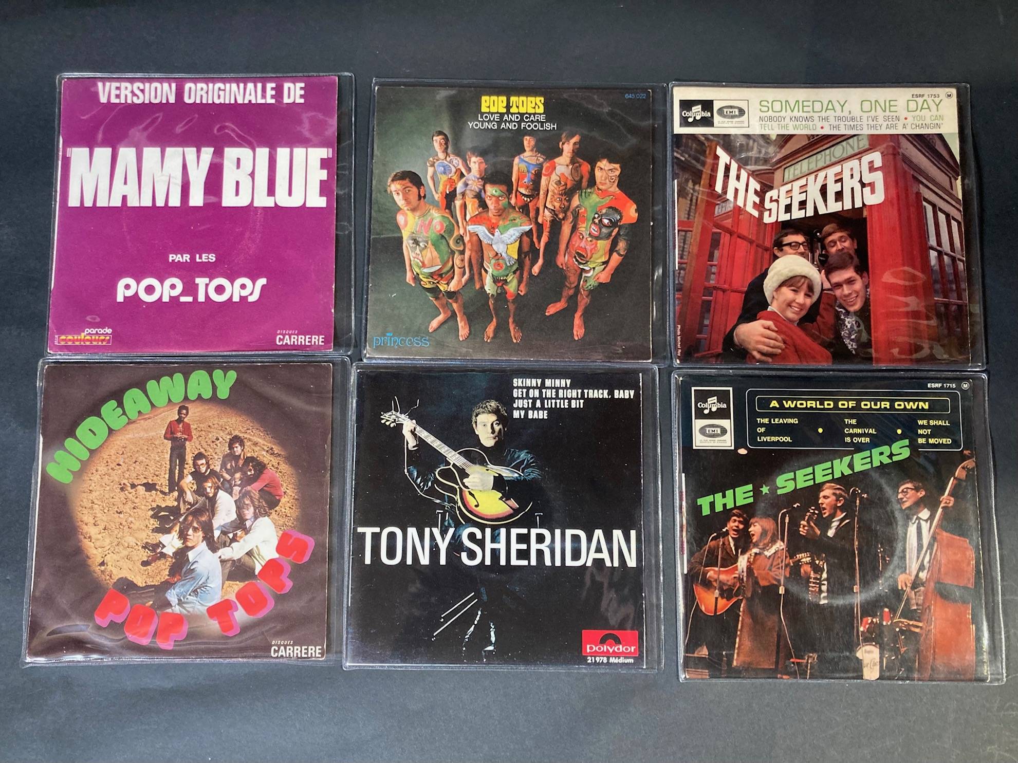 Lot de 15 X 45 tours de divers groupes : Lou RAWLS, The KNACKS, The SHUFFLES, les SHAKERS, POP TOPS, The SEEKERS, Tony SHERIDAN...