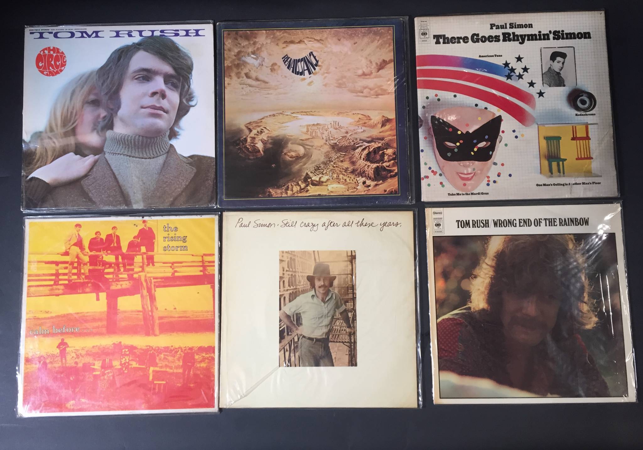 Ensemble de 12 albums de groupes divers dont : The JOHN RENBOURN, Paul SIMON, RENAUSSANCE, The RISING STORM,Tom RUSH.