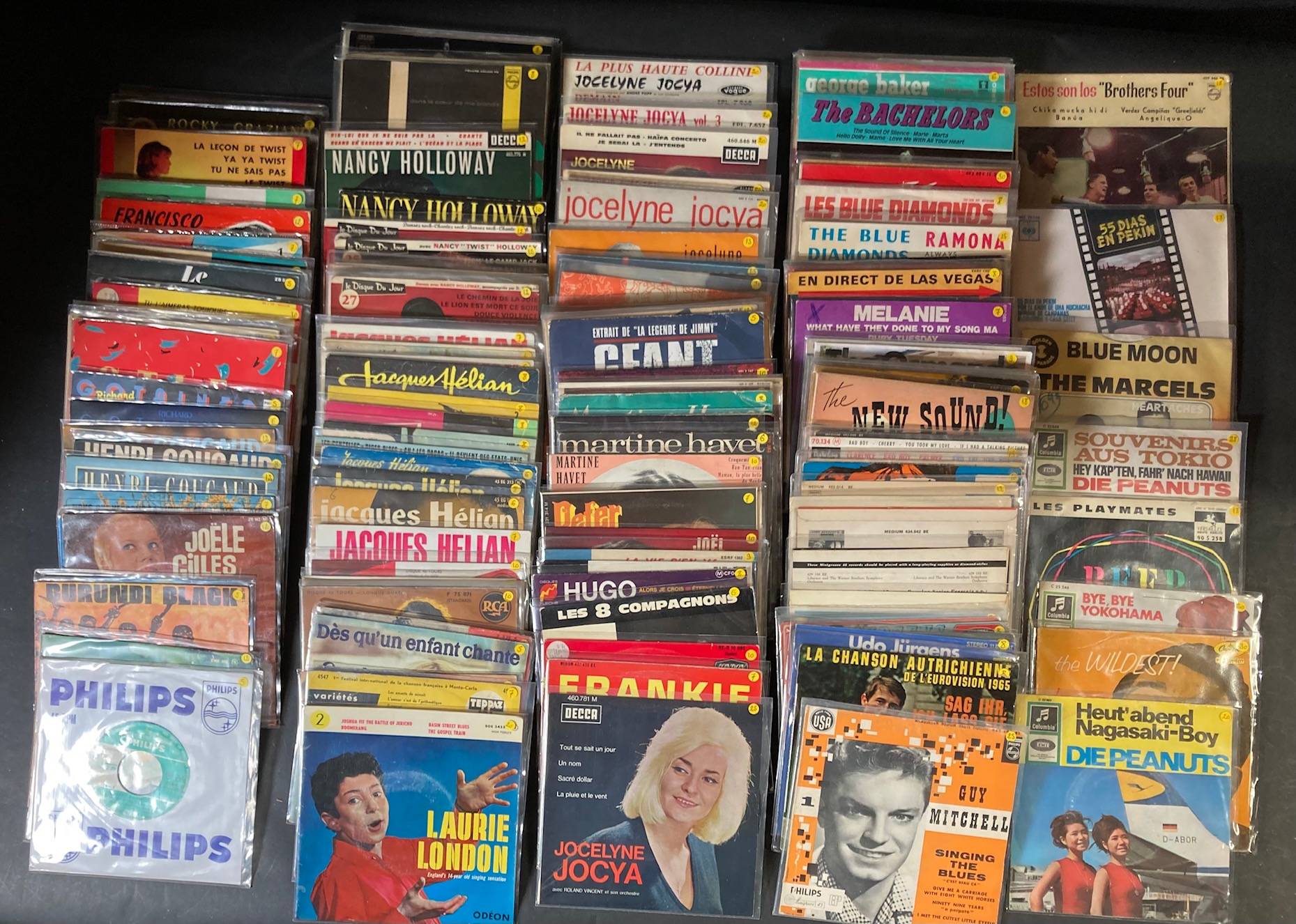 Lot de 156 x 45 tours de divers artistes... Laurie LONDON, Die PEANUTS, The LAFAYETTES, NAPOLEON XIV, DIES IRAE, JOCELYNE, Andy WILLIAMS, Nancy HOLLOWAY, GRIBOUILLE, GLENMOR...