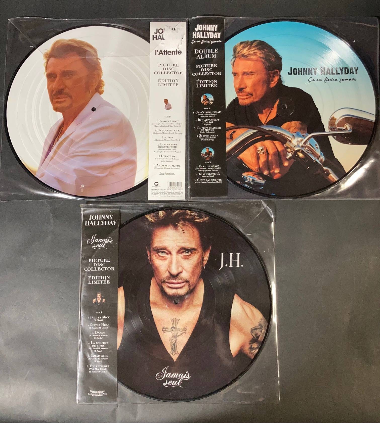 Lot de six picture-discs "Jamais seul", "Ca ne finira jamais", "le coeur d'un homme"...