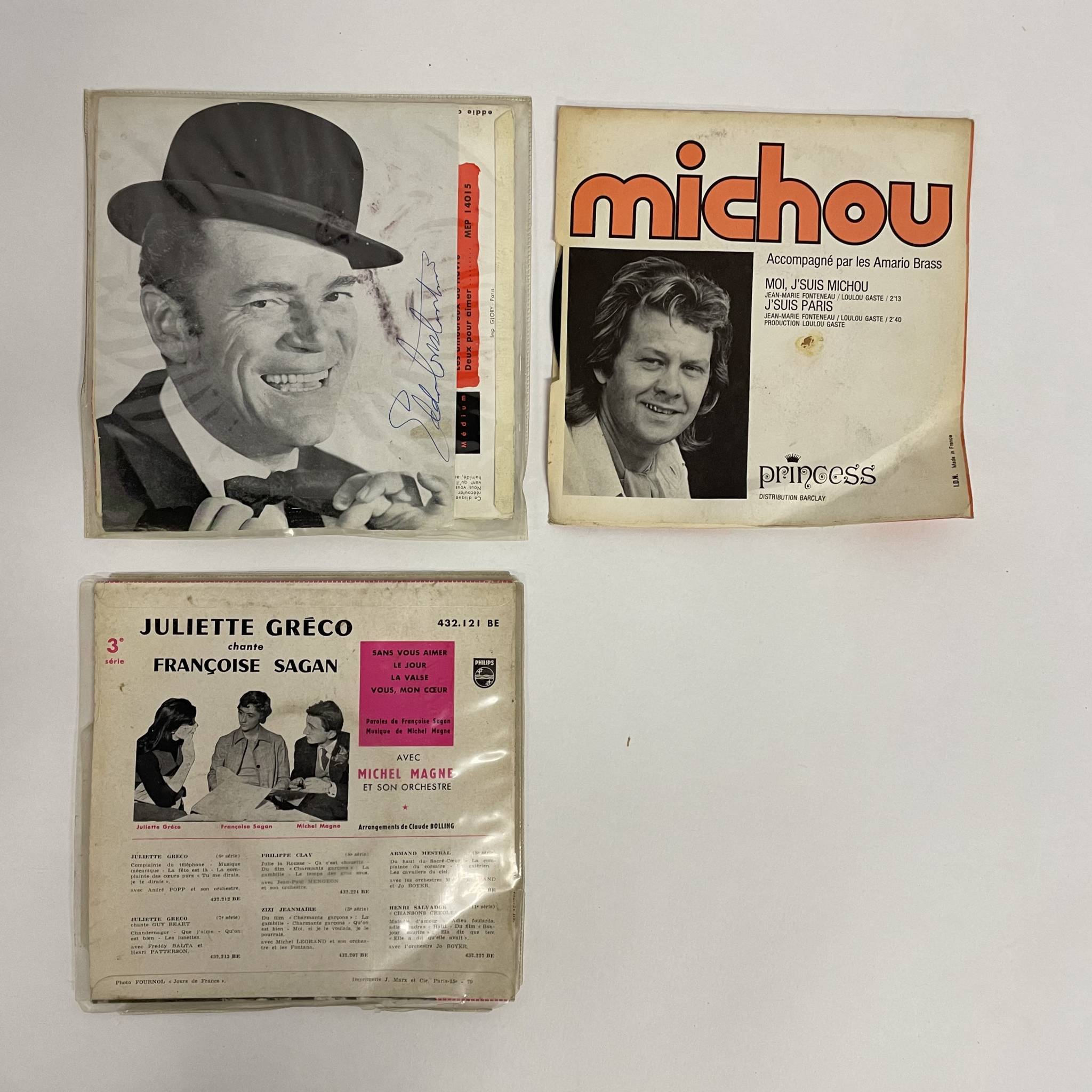 Eddie Constantine (sur la pochette et une photo d'un journal, Michou (sur la pochette) et Juliette Greco sur une photo ajoutée avec le vinyle.
