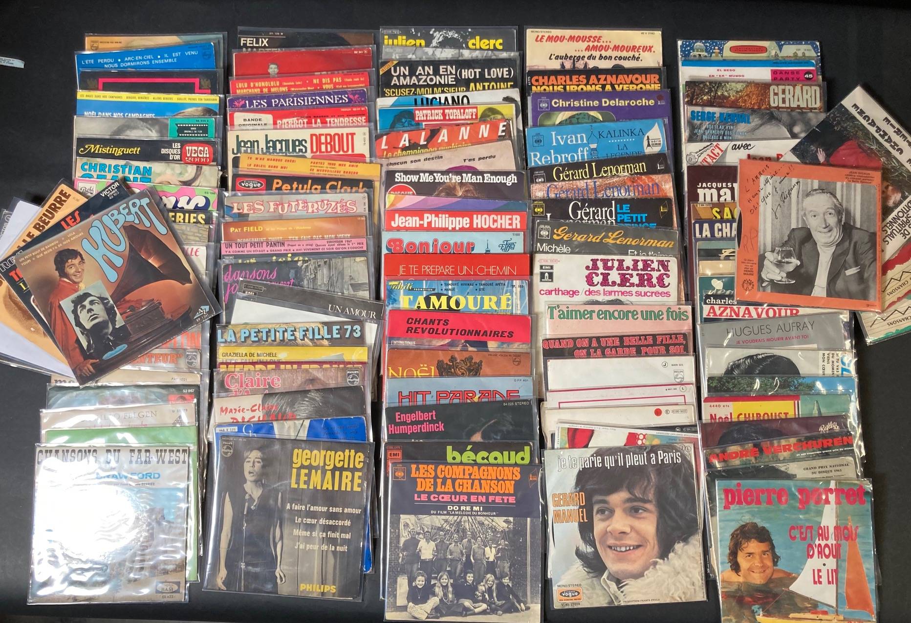 Ensemble de 111, 45 tours de variété Française et divers... Eddy MITCHELL, Alain BARRIERE, Les TROUBADOURS, LOLITA, Isabelle AUBRET, John WILLIAM, Frederic FRANCOIS, Gilbert BECAUD, Ray TAVER...
