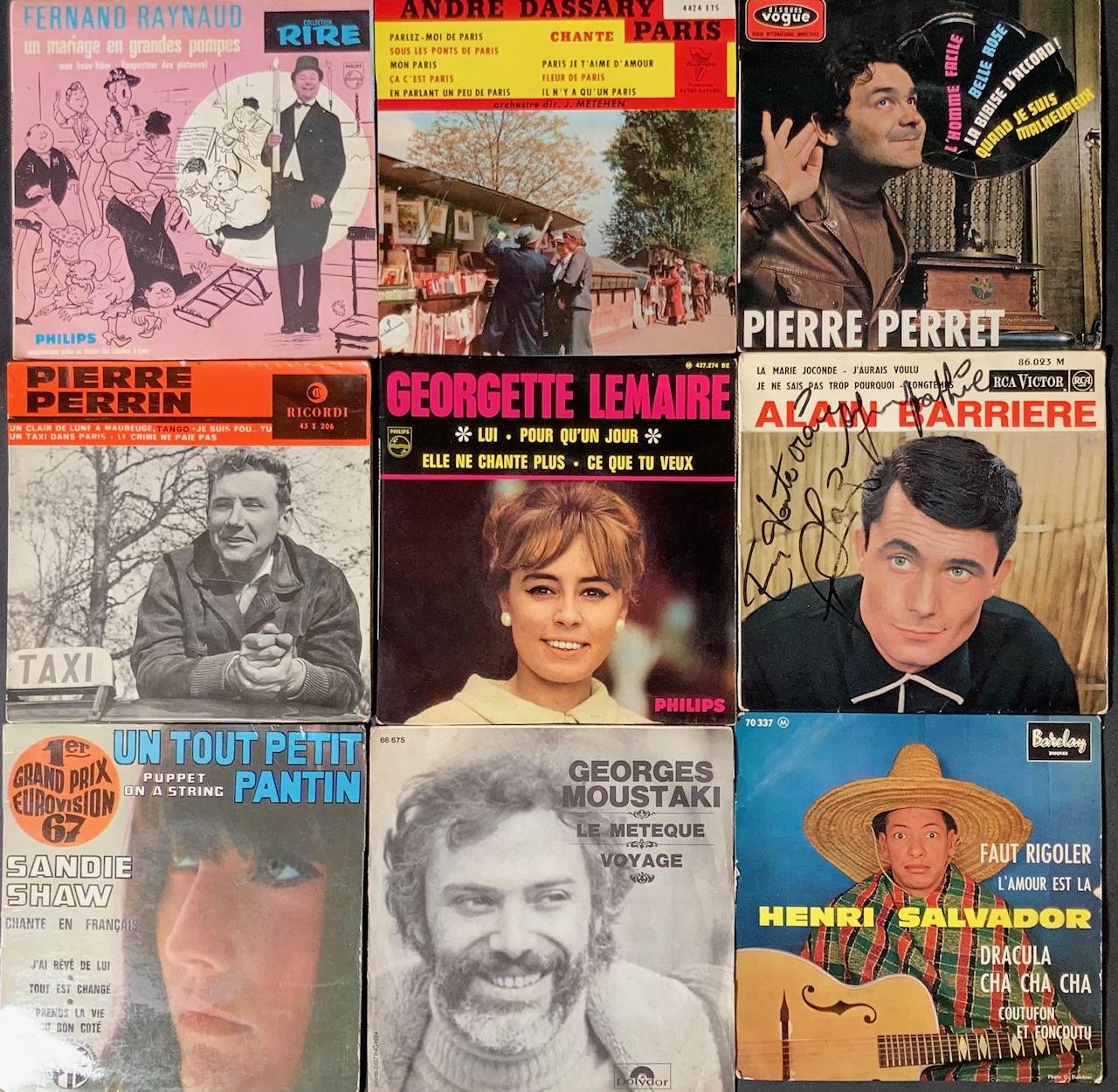 Ensemble de 110, 45 tours de variété Française et divers : Jacques BREL, George BRASSENS, Andre DASSARY, Pierre PERRIN, Georgette LEMAIRE, Maria CANDIDO, Jean CARDON, WANN, BOURVIL...