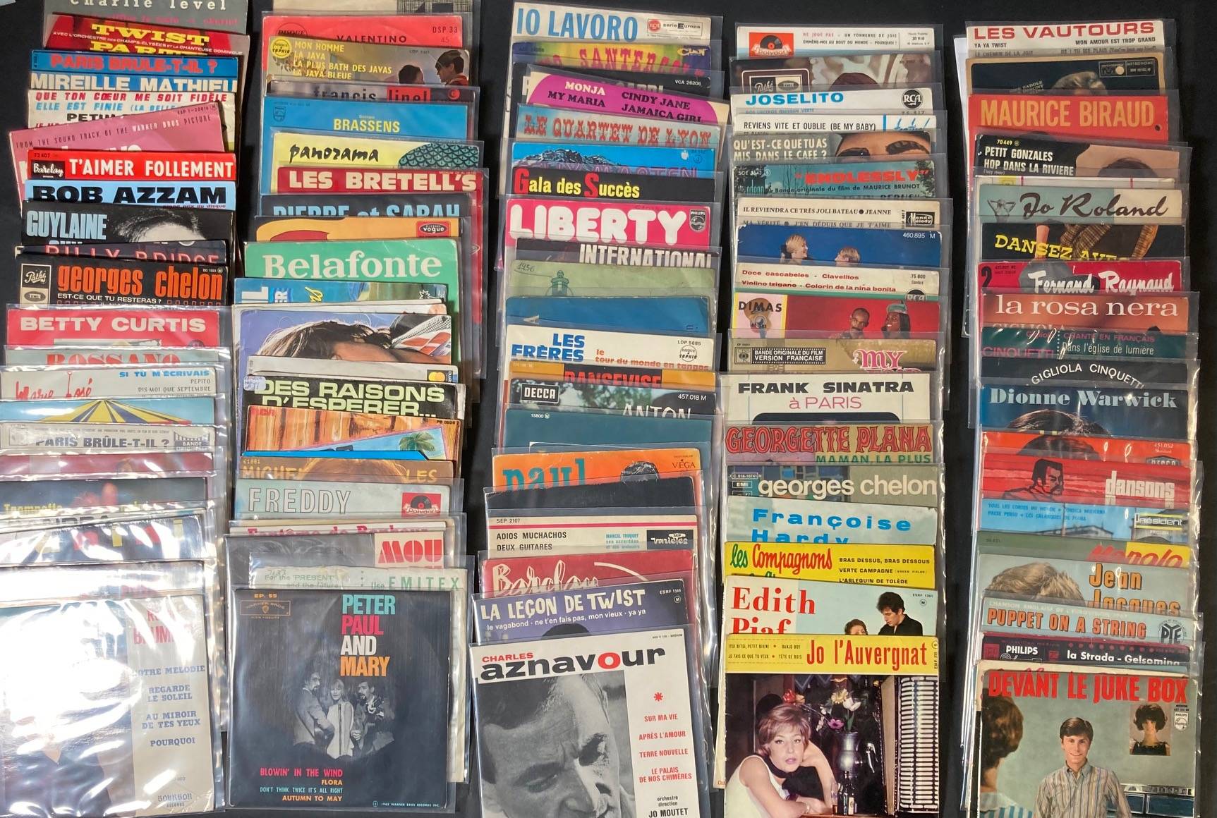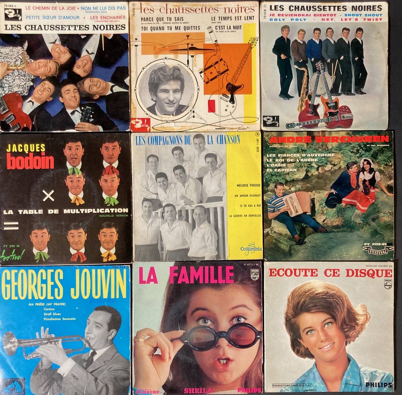 Les CHAUSETTES NOIRES, Edith PIAF, Françoise HARDY,Robert BRUMMEL, ZANINI,ROSSANO, Charlie LEVEL, Herbert LEONARD, Georges BRASSENS, Mahalia JACKSON...