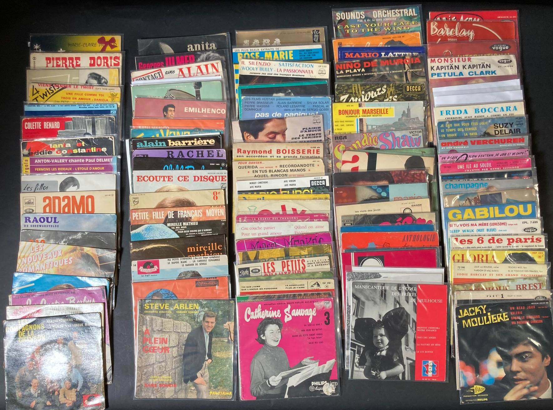 Ensemble de 110, 45 tours de Variété Française et divers... Pierre SELLIN, Michel LAURENT, Michèle ARNAUD, Claude FRANCOIS, Petula CLARK, Colette RENARD, VIC DANA, YMA SUMAC, André VERCHUREN...