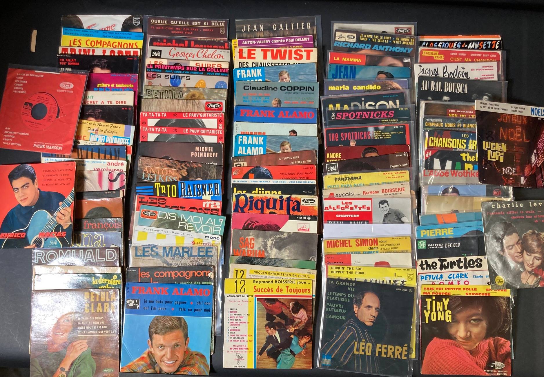 Lot de 110, 45 tours de variété Française et divers... ROMUALD, Les SUNLIGHTS, Le KILT, ADAMO, POLNAREFF, Berthe SYLVA, John WILLIAM, Robert COGOI, Petula CLARK, Georges CHELON, Pierre SELOS, Jean GALTIER...