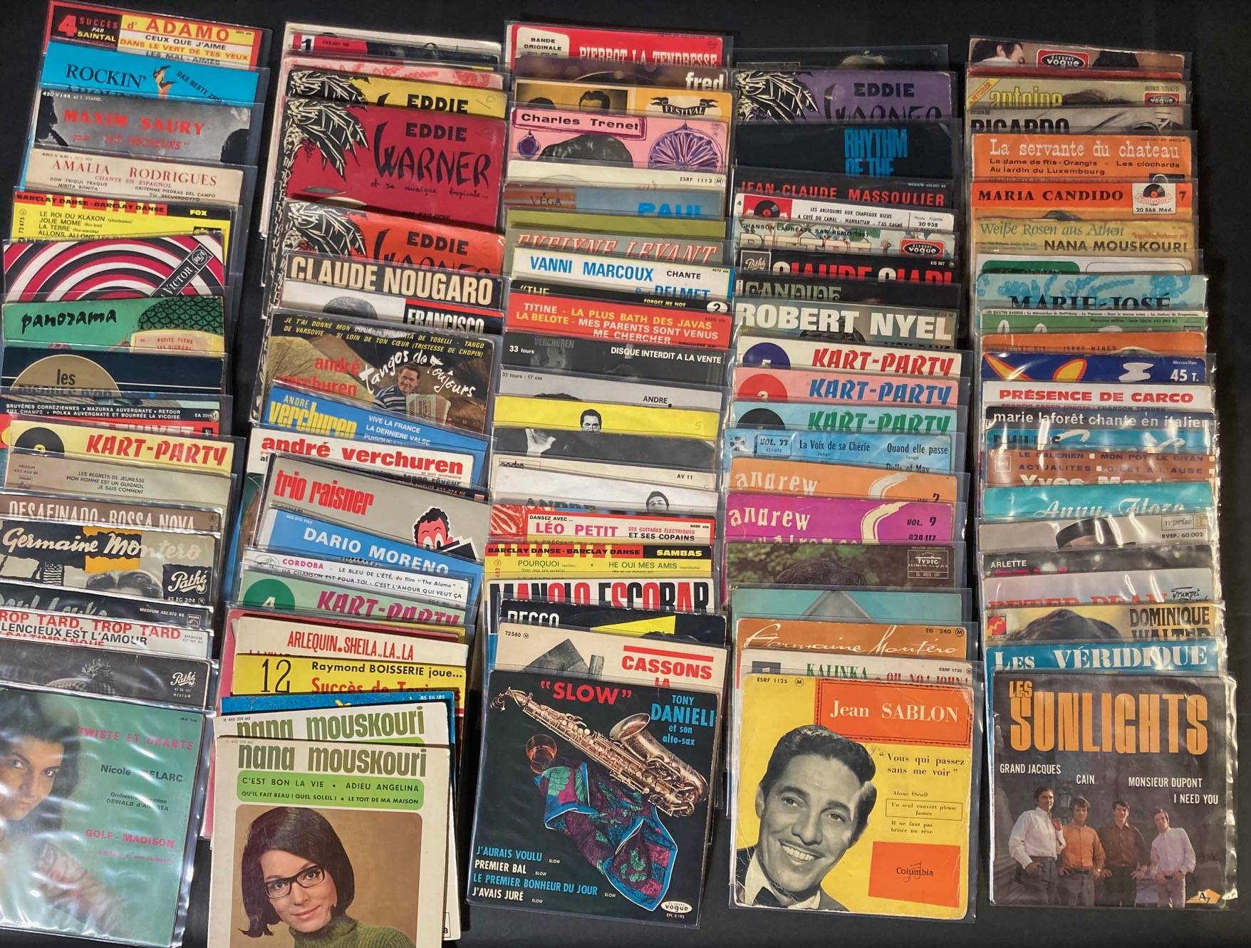 Lot de 120, 45 tours de Variété Française et divers : Dominique WALTER, NICOLETTA, BARBARA, Paul MAURIAT, Anita MORALES, ADAMO, Léo PETIT, Jean-Claude MASSOULIER...