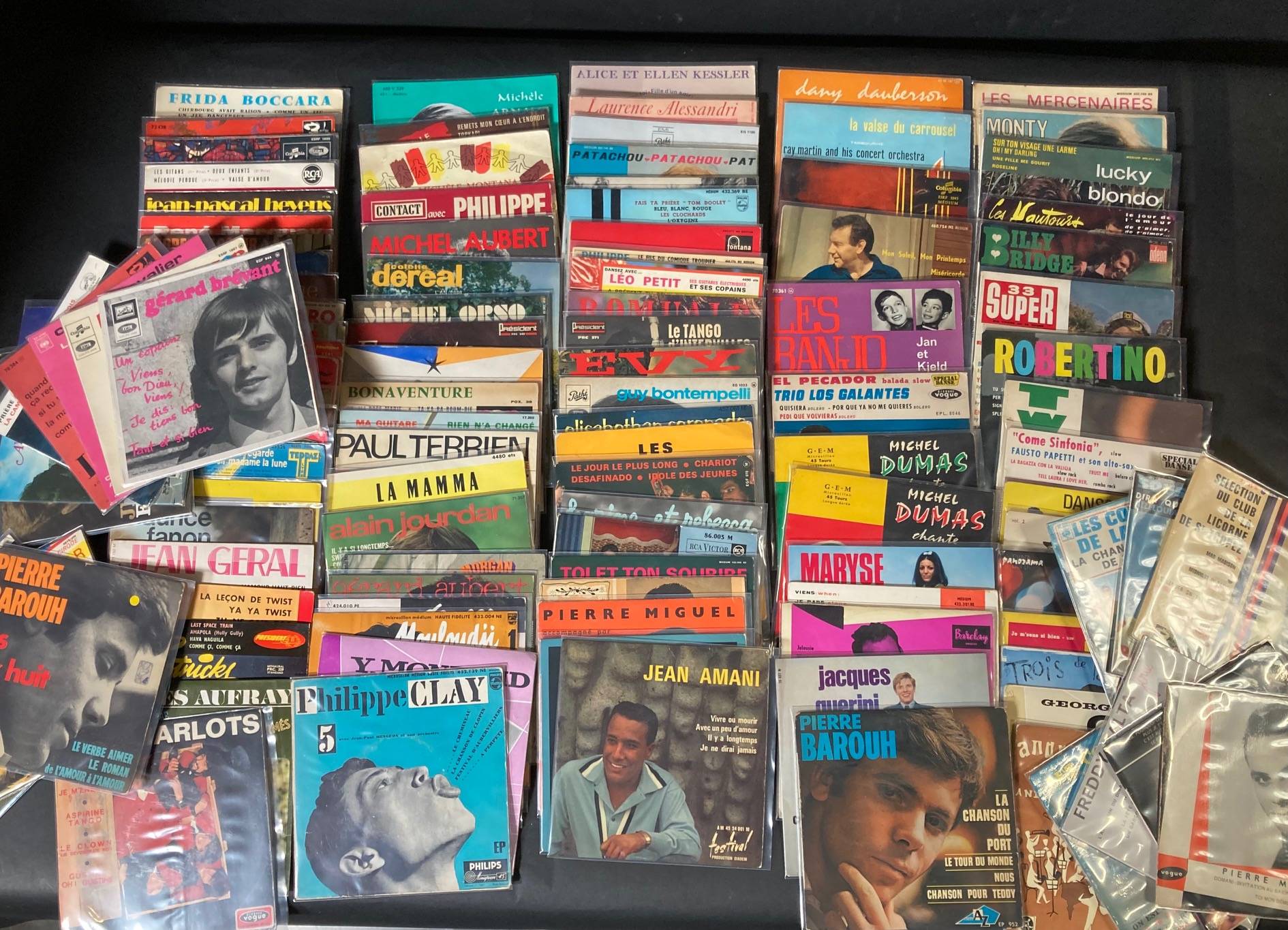 Lot de 121, 45 tours de variété Française et divers...Hugues AUFRAY, The SPOTNICKS, Jean GERAL, Laura MELLEC, MOULOUDJI, Claire CHEVALIER, Les JOYEUX COMPAGNONS, Jacques GUERINI, Michèle ARNAUD...