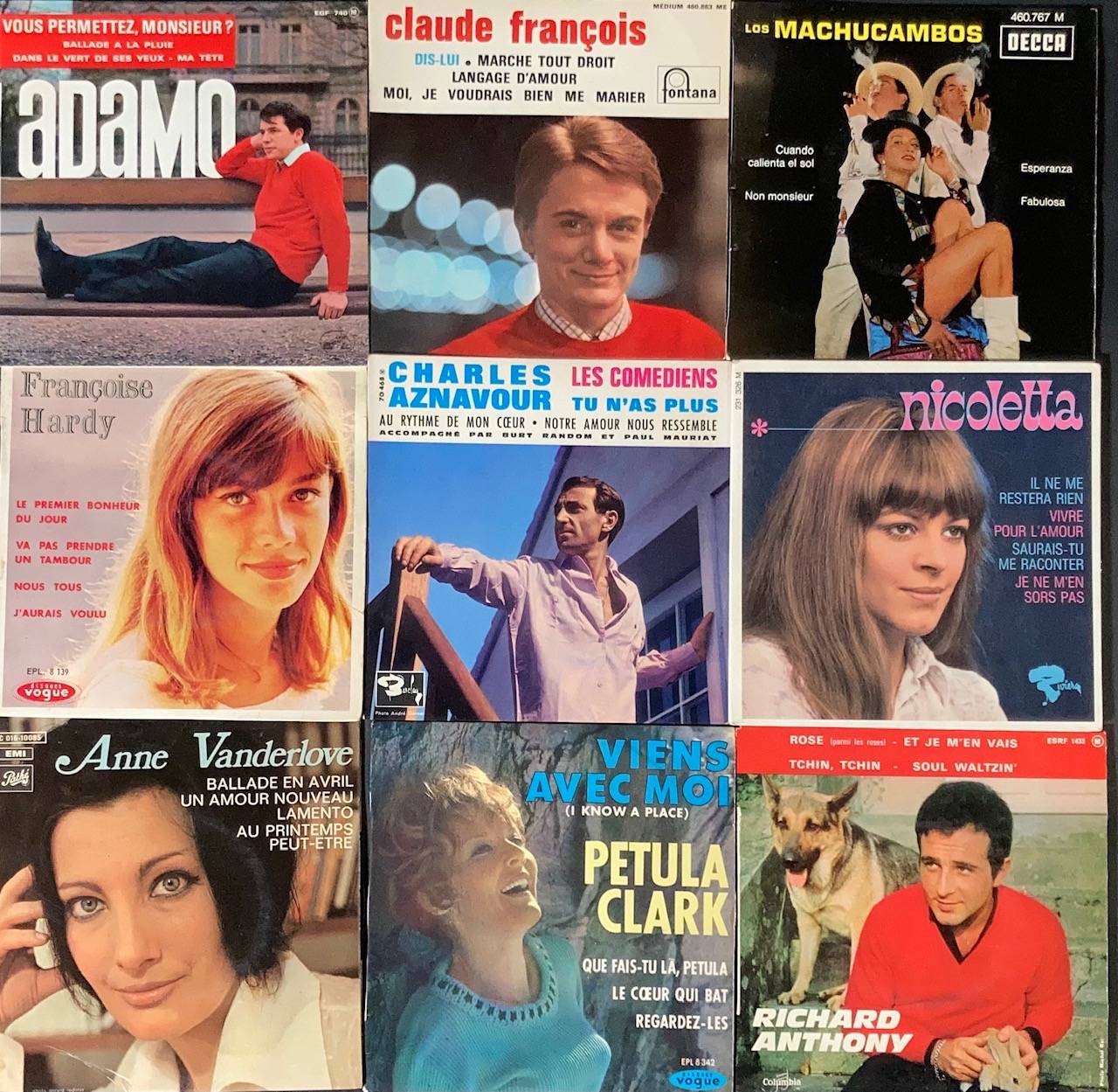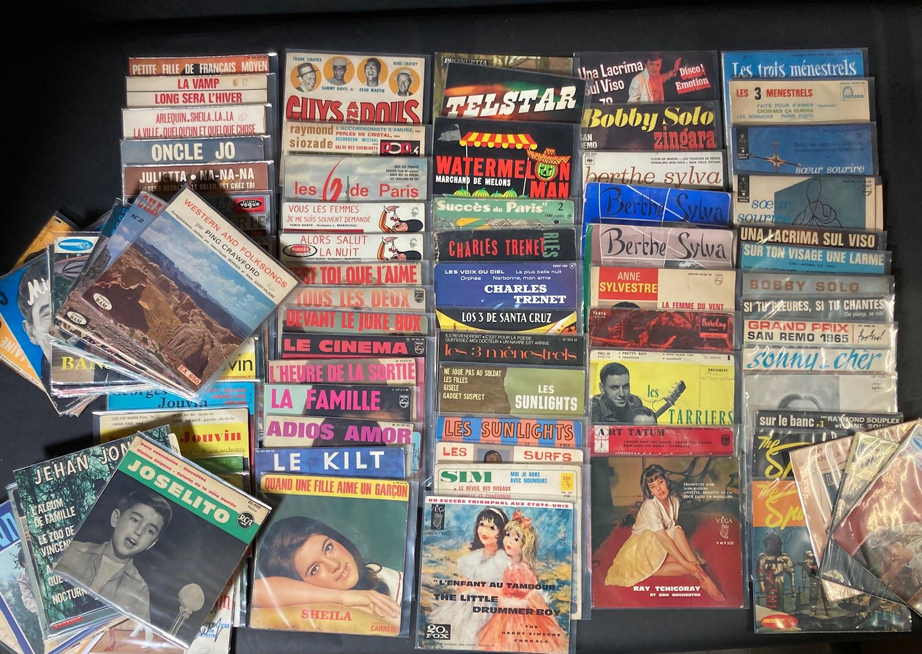 Lot de 105, 45 tours de Variété Française et divers... Bobby SOLO, Charles TRENET, Georges JOUVIN, SHEILA, Los MACHUCAMBOS...