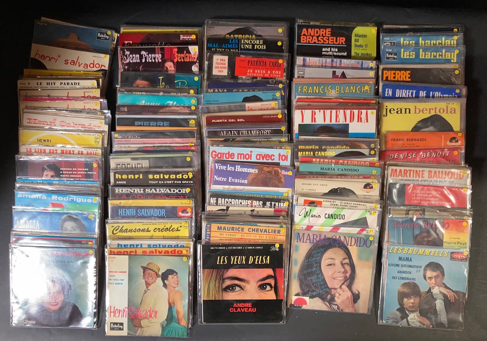 Lot de 168 x 45 tours de divers artistes... Henri SALVADOR, Dany FISCHER, FRANCISKA, Gerard BRENT, Minouche BARELLI...