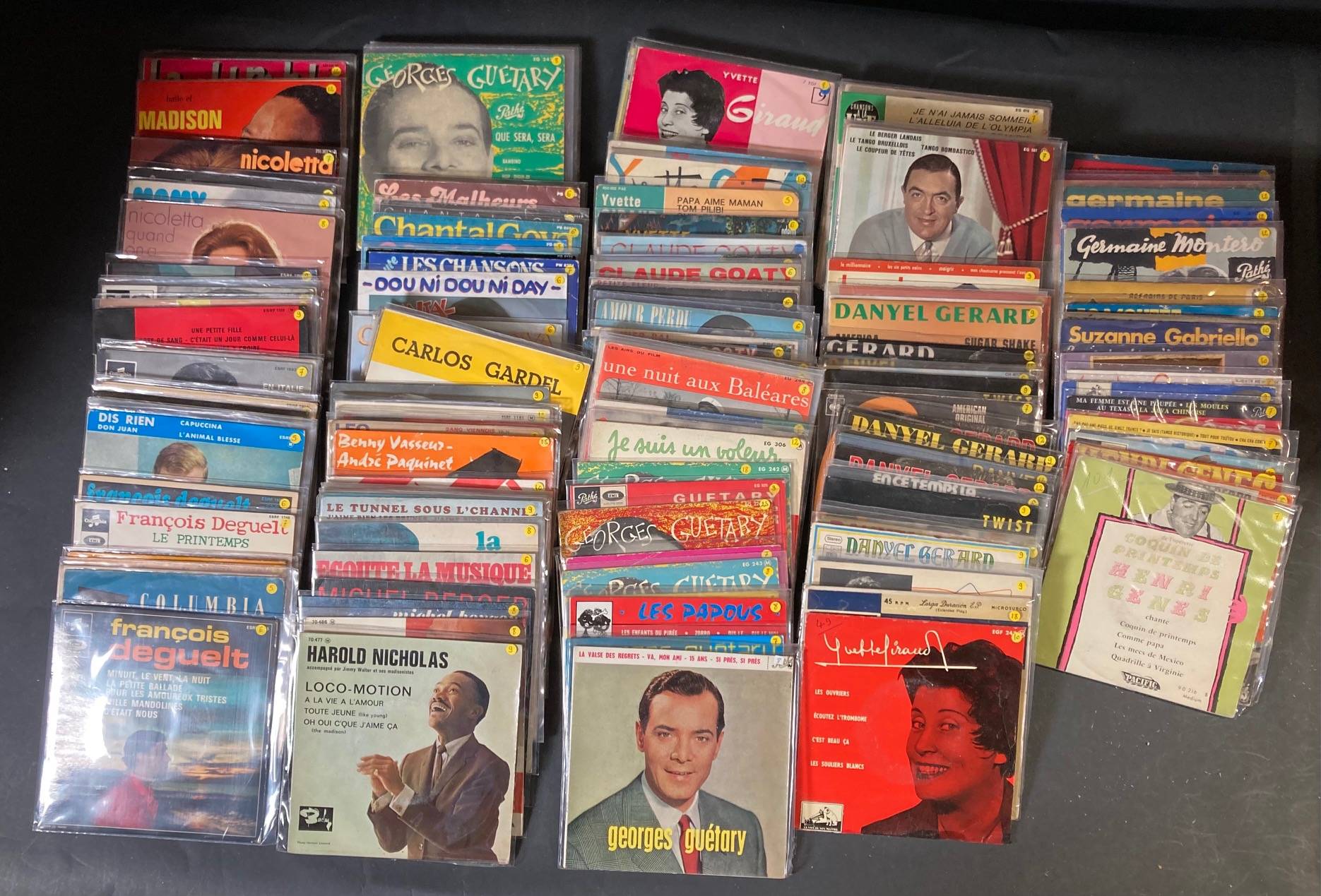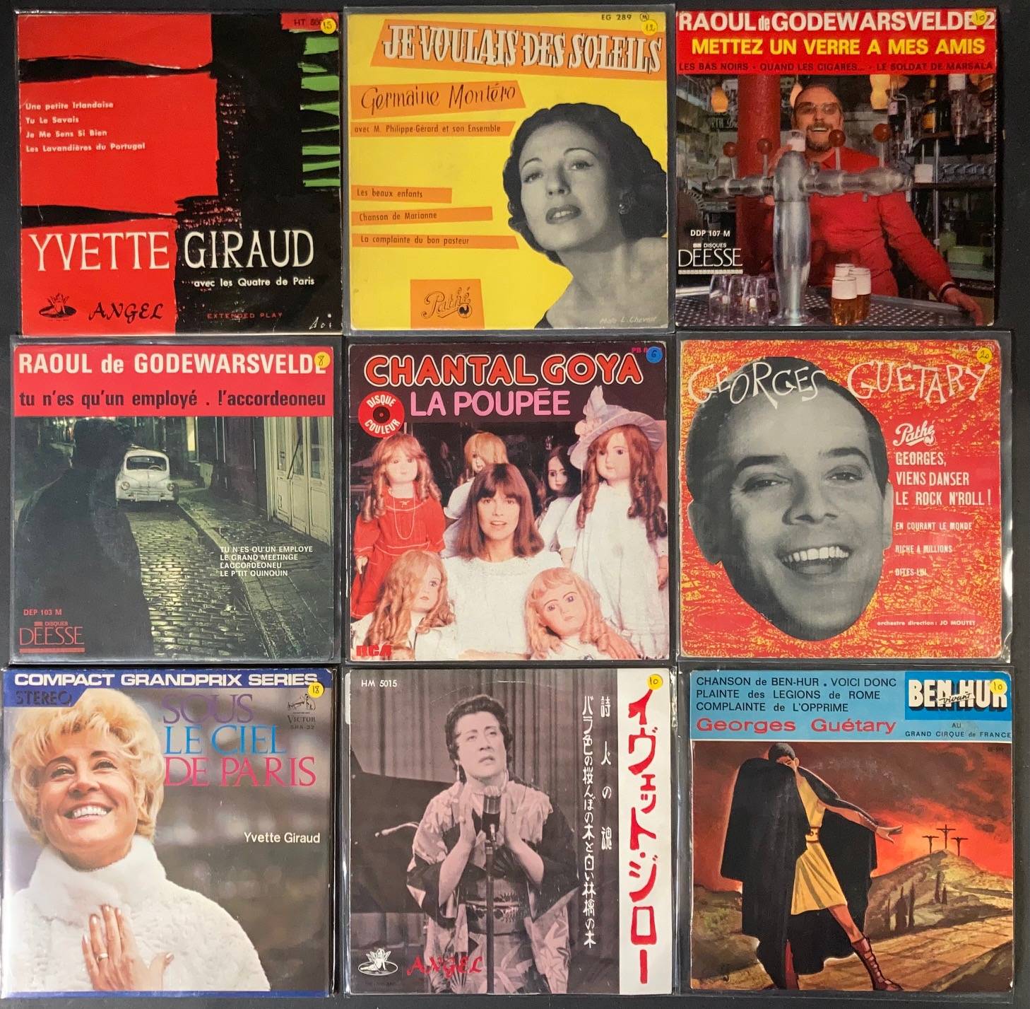 Lot de 156 x 45 tours de divers artistes... Yvette GIRAUD, Germaine MONTERO, Georges GUETARY, Chantal GOYA, Raoul GODEWARSVELDE...
