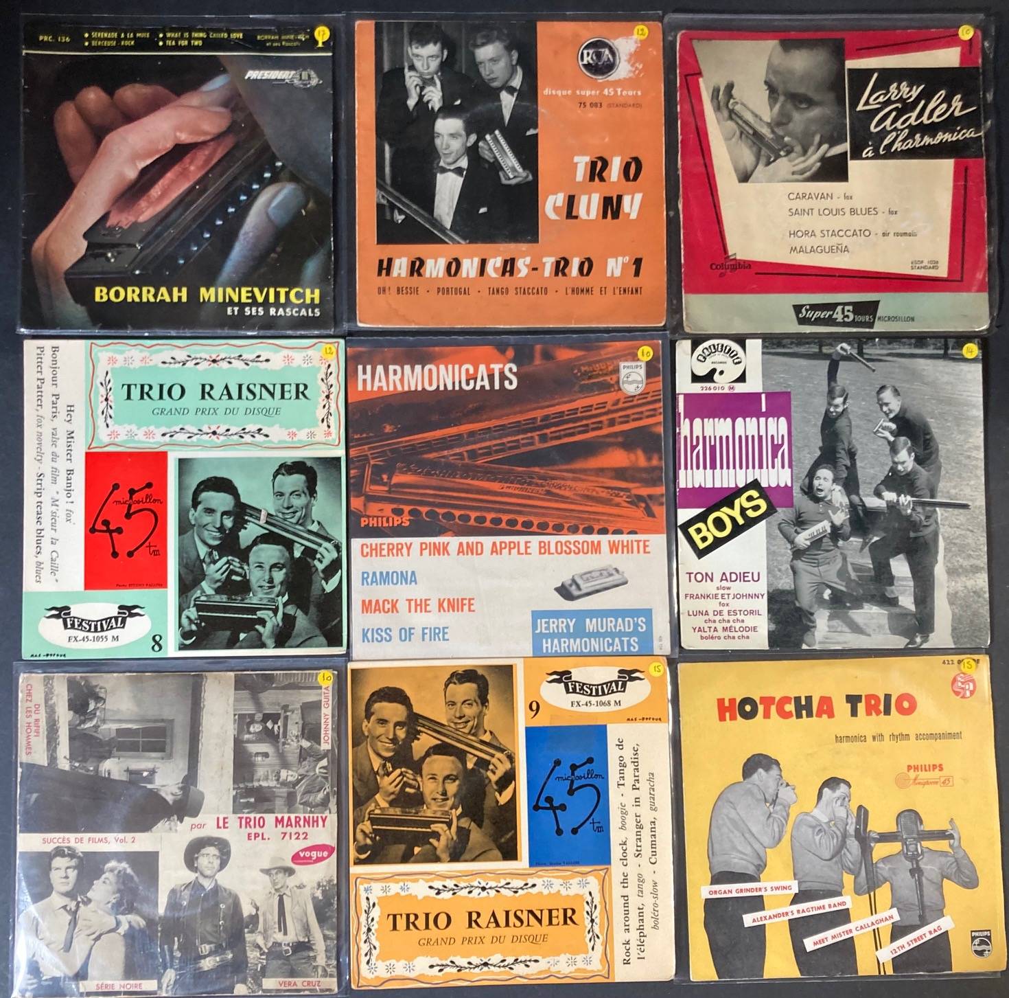 Ensemble de 26 x 45 tours d'artiste harmonicistes.