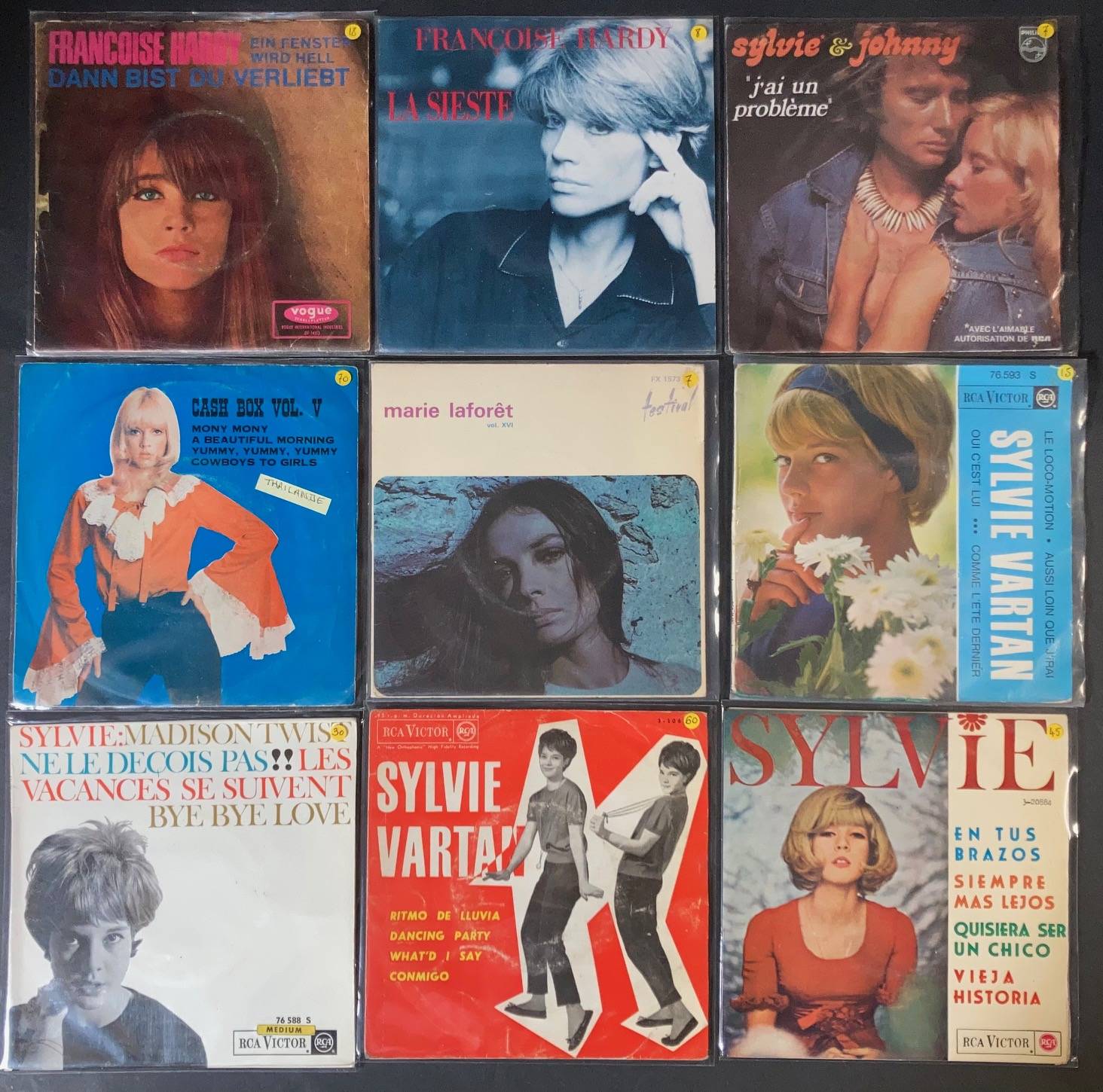 Lot de 72 x 45 tours de divers artistes de Variété Française : Françoise HARDY, France GALL, Sylvie VARTAN, Marie LAFORET...