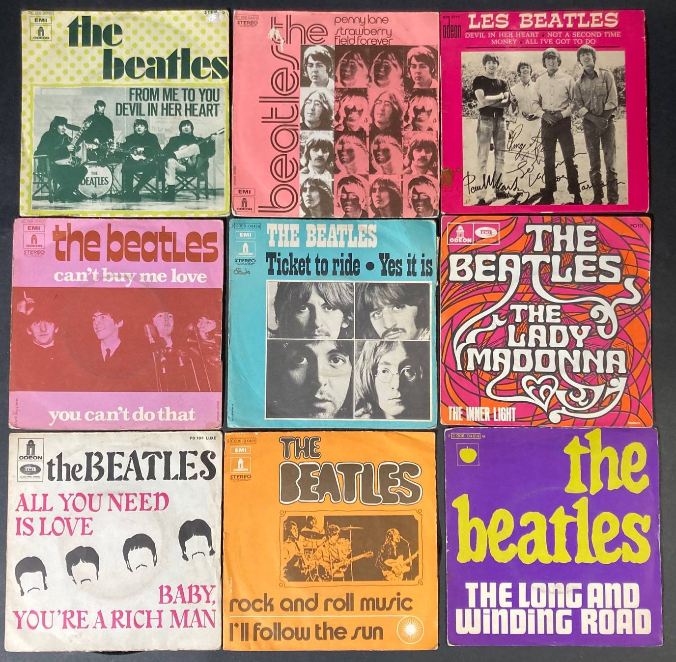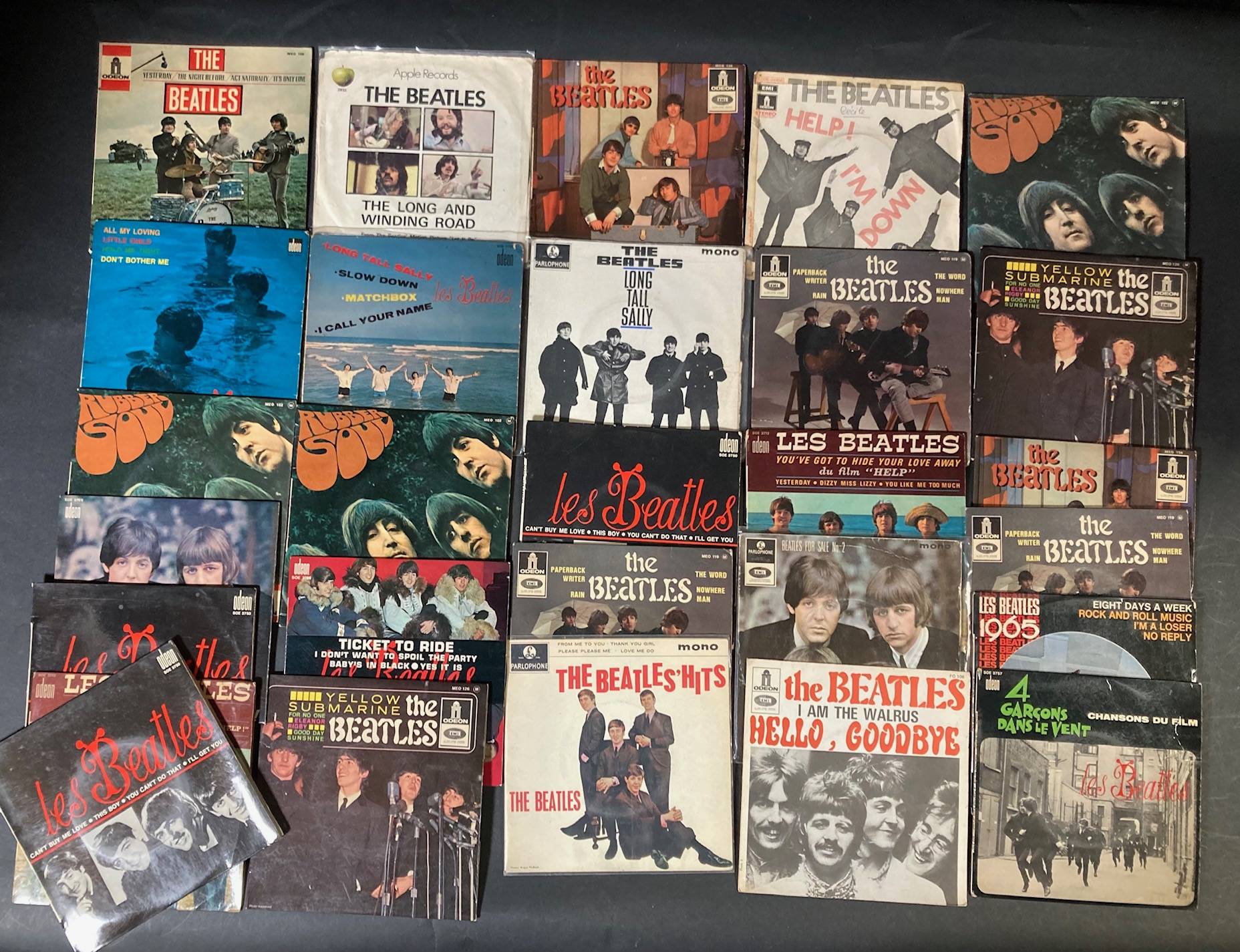 Lot de 36 x 45 tours de divers albums des BEATLES.