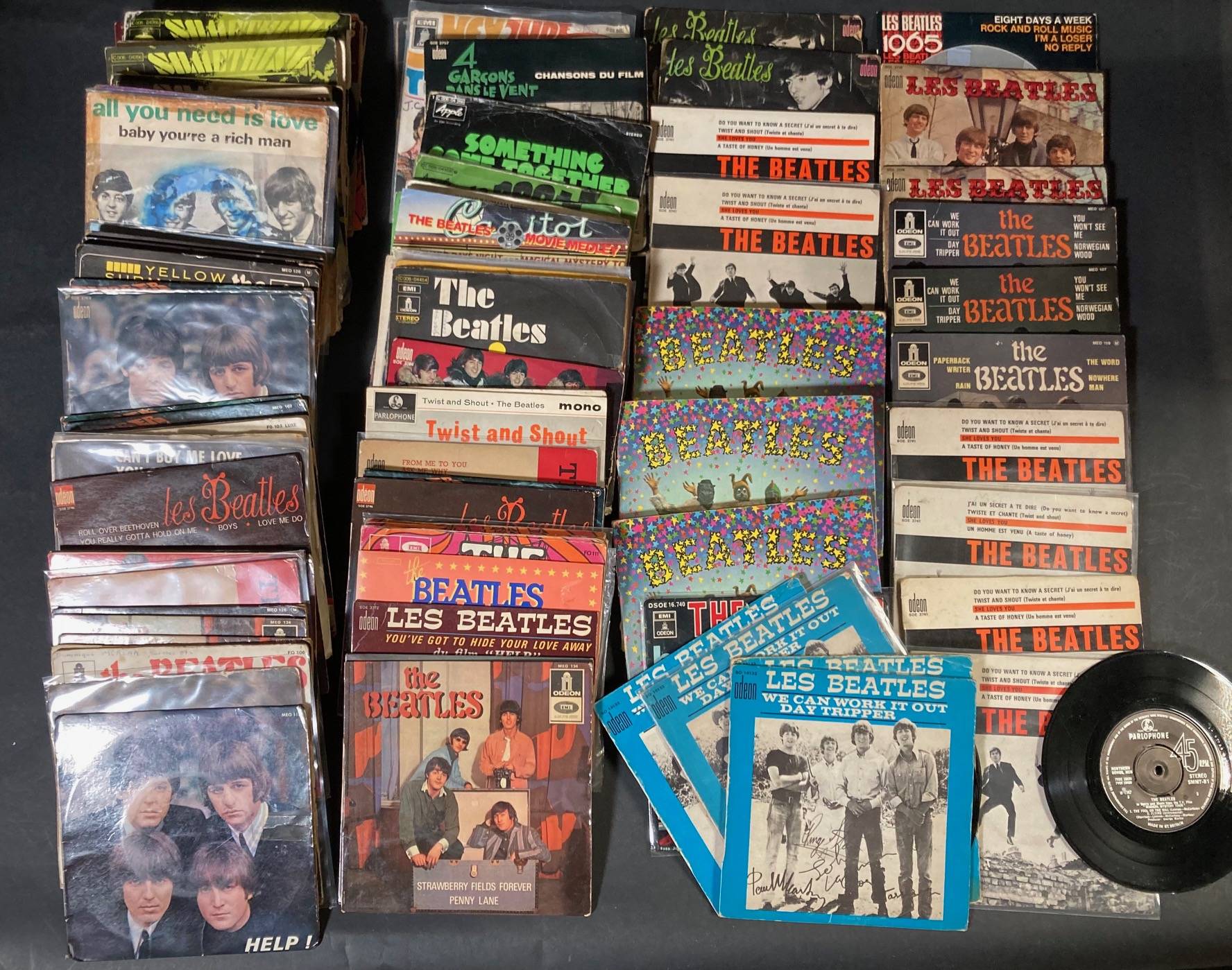 Lot d'une centaine de 45 tours du groupe BEATLES dans divers états.