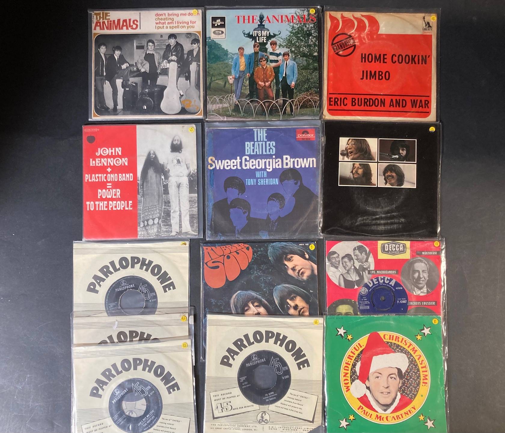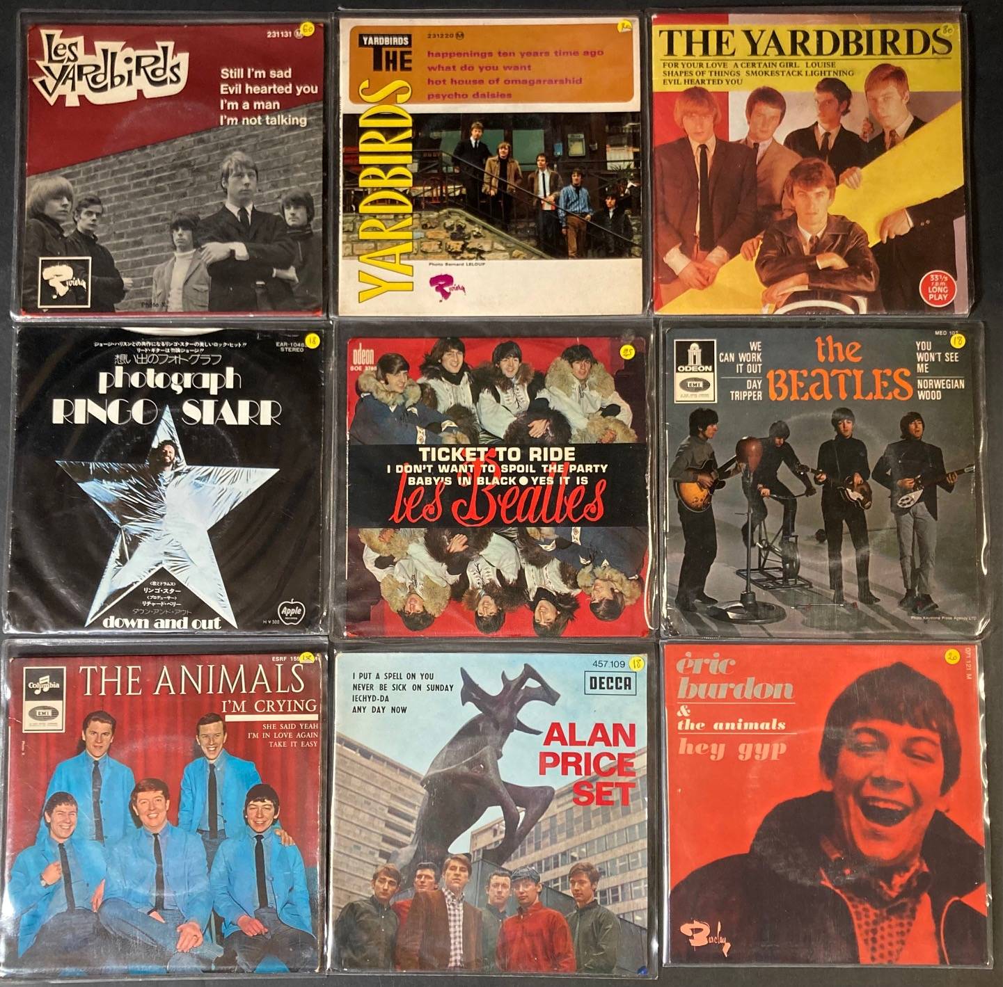 Lot de 22 x 45 tours de divers groupes Britanniques : The BEATLES, The ANIMALS, Eric BURDON, ALLAN PRICE SET, The YARDBIRDS...