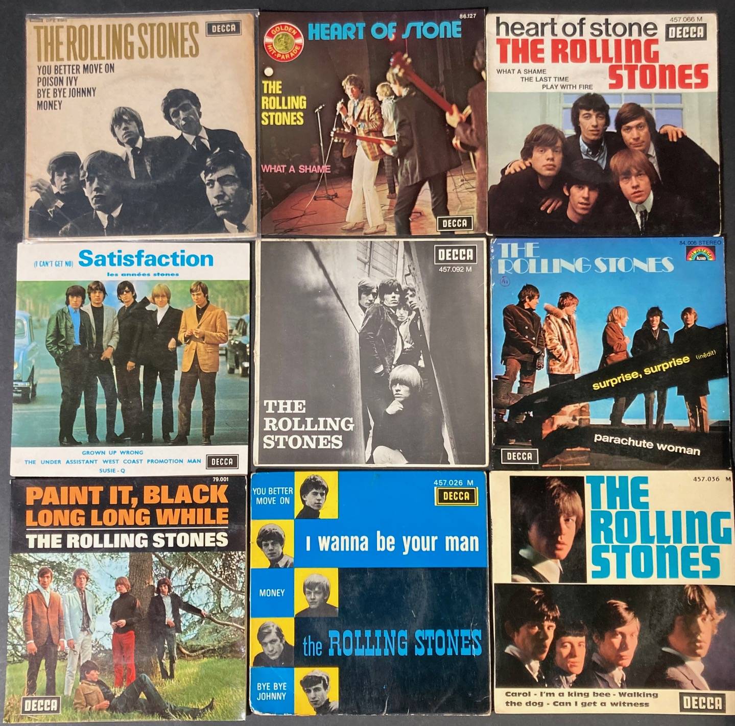 Lot de 70 x 45 tours du groupe The ROLLING STONES.