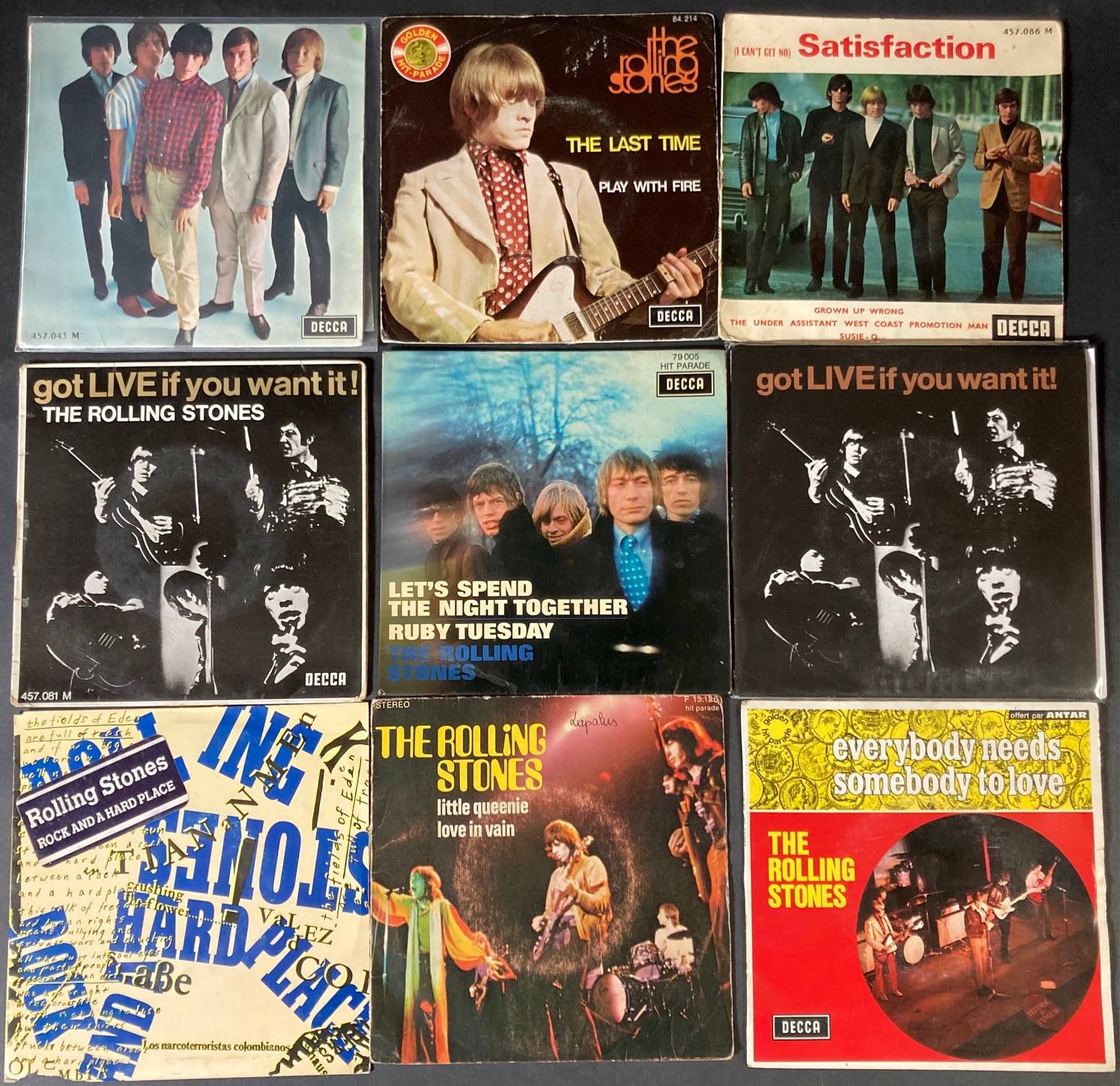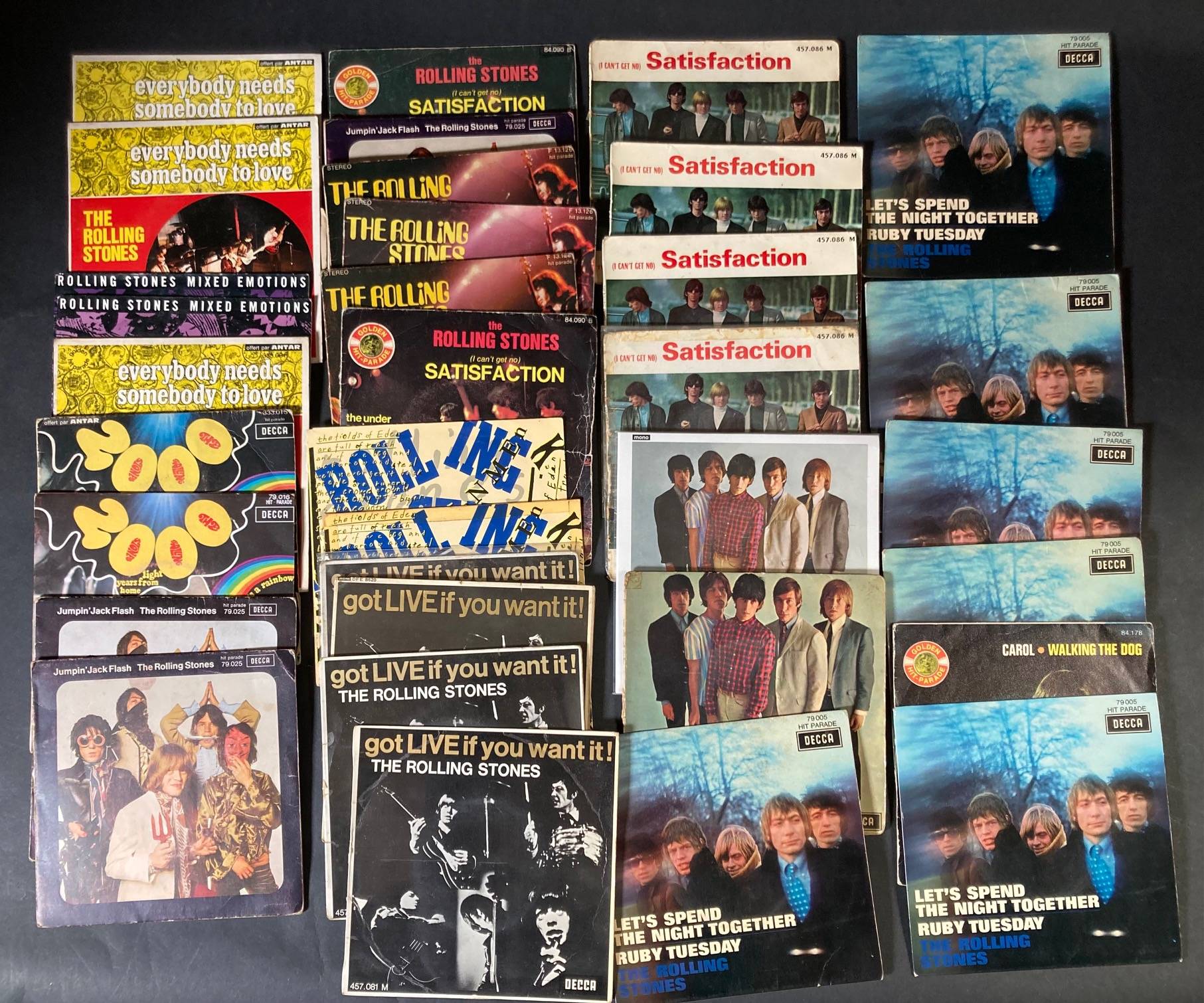 Lot de 43 x 45 tours de divers albums du groupe ROLLING STONES.