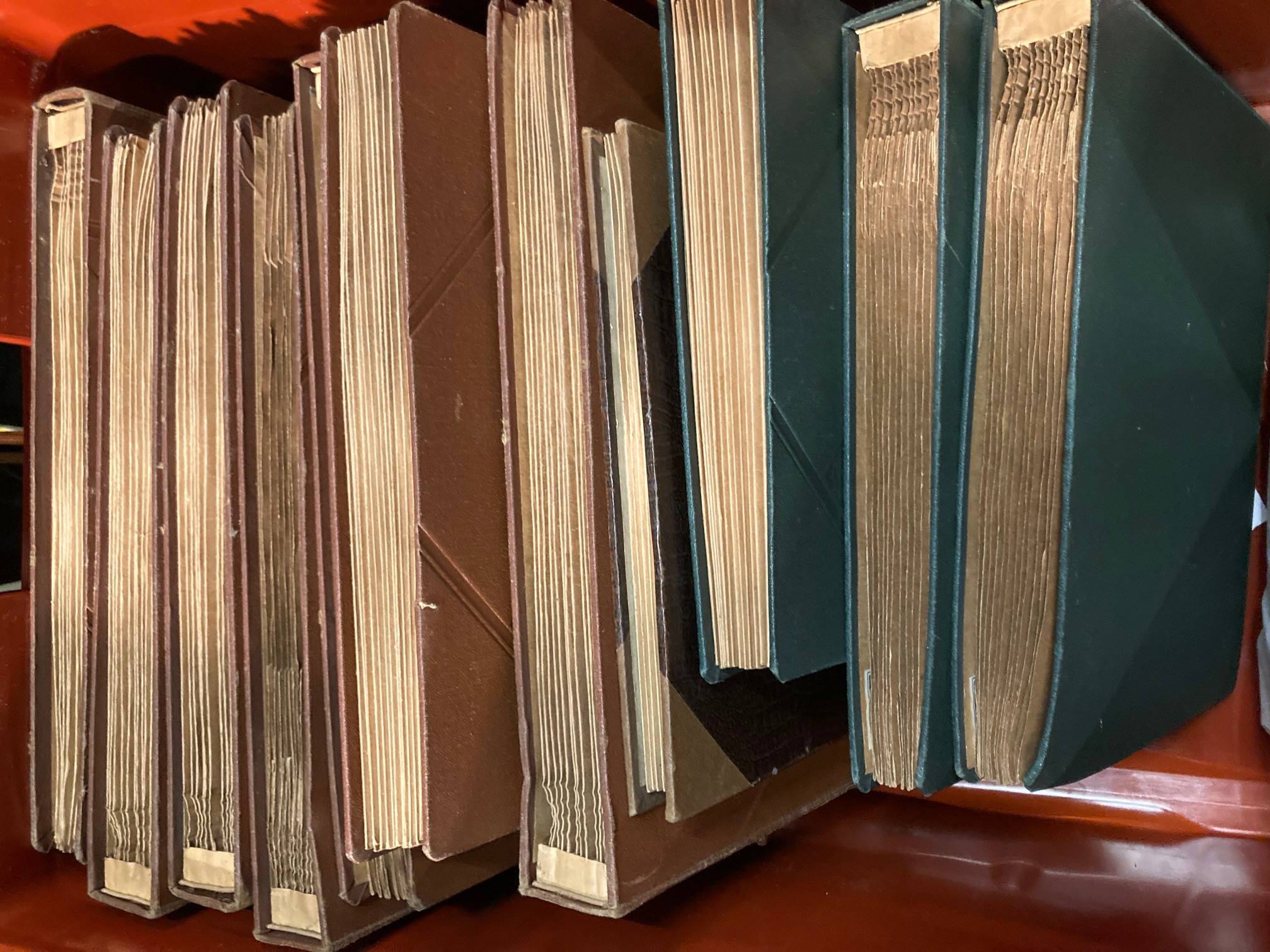 Une caisse contenant 11 albums de disques pour phonographes.