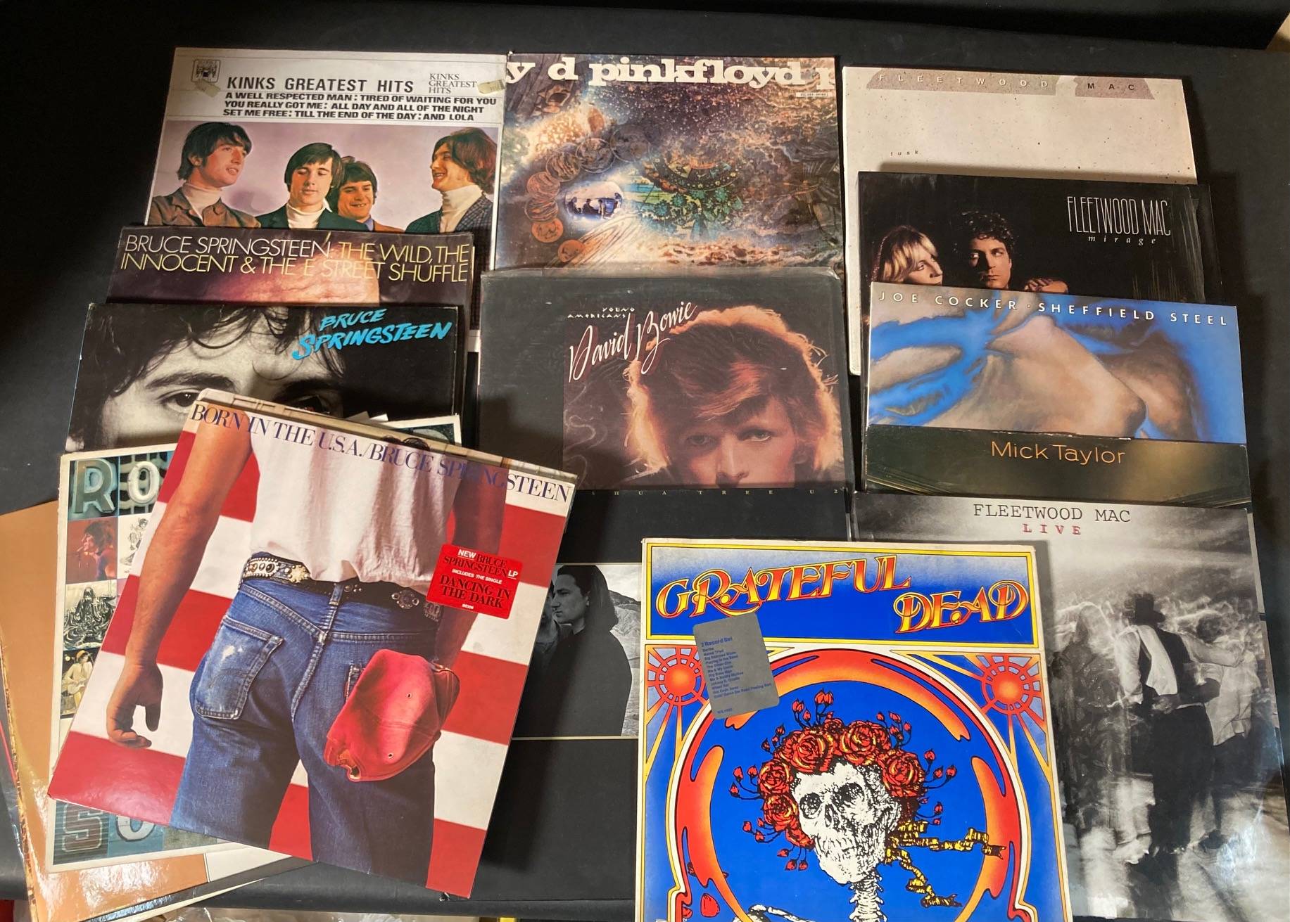 Lot de 46 x 33 tours divers dont BOWIE, Bruce Springsteen, Pink FLOYD, DIRE STRAIT, CAT STEVENS...