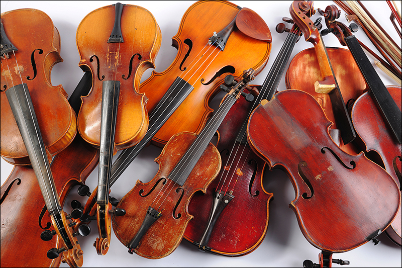 Lot de neuf violons et archets divers