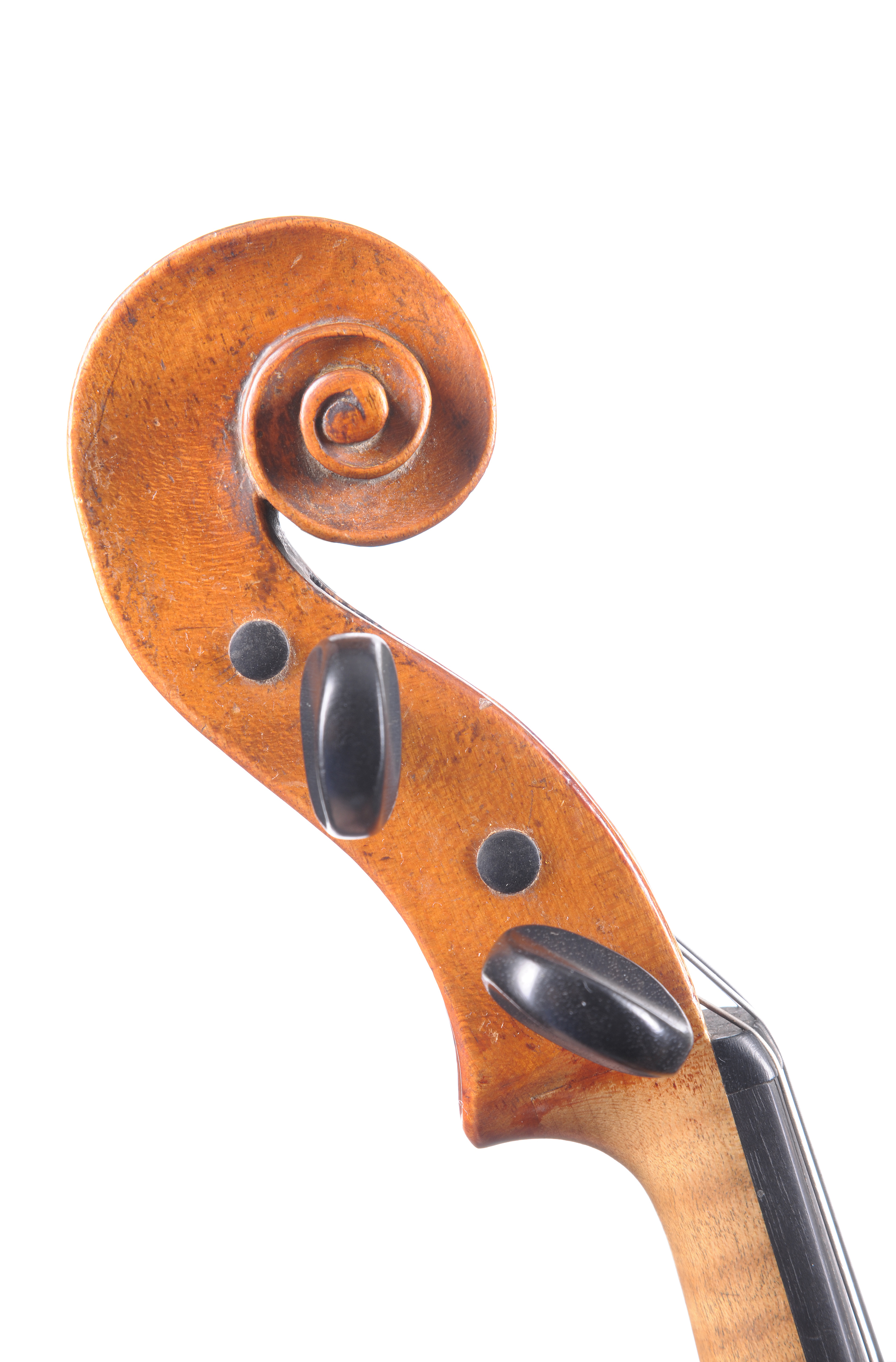 Violon d'Europe Centrale. Fond d'une pièce, Inscription manuscrite à l'intérieur. Millésime de 1832. Table en sapin. 357 mm. Prêt à jouer, avec étui Orly et archet allemand.