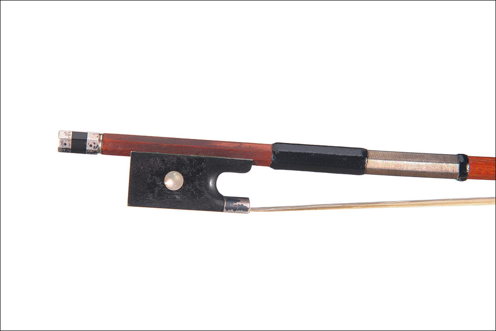 Archet de violon fait par Emil Werner. Baguette octogonale, hausse ébène montée argent avec grain. Bouton deux viroles. 727 mm, 61,8g