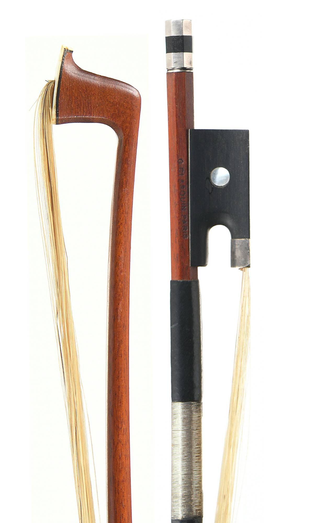 1/2 French violin bow bearing the stamp "C.CLASQUIN PARIS" with its violin.