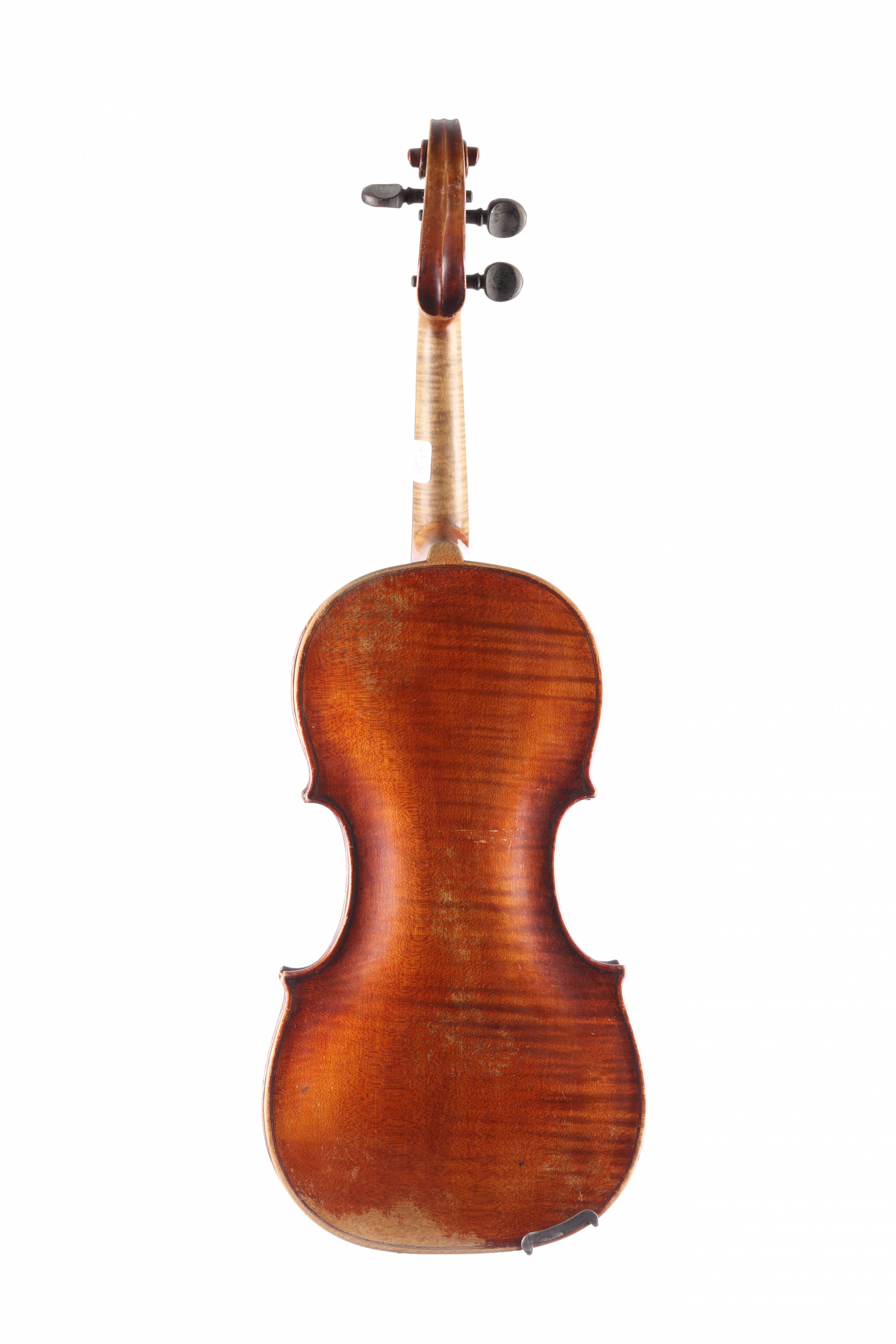 portant une étiquette "KLOZ in Mittenwald". Fond d'une pièce en érable. Vernis brun orangé sur fond doré. 362 mm.