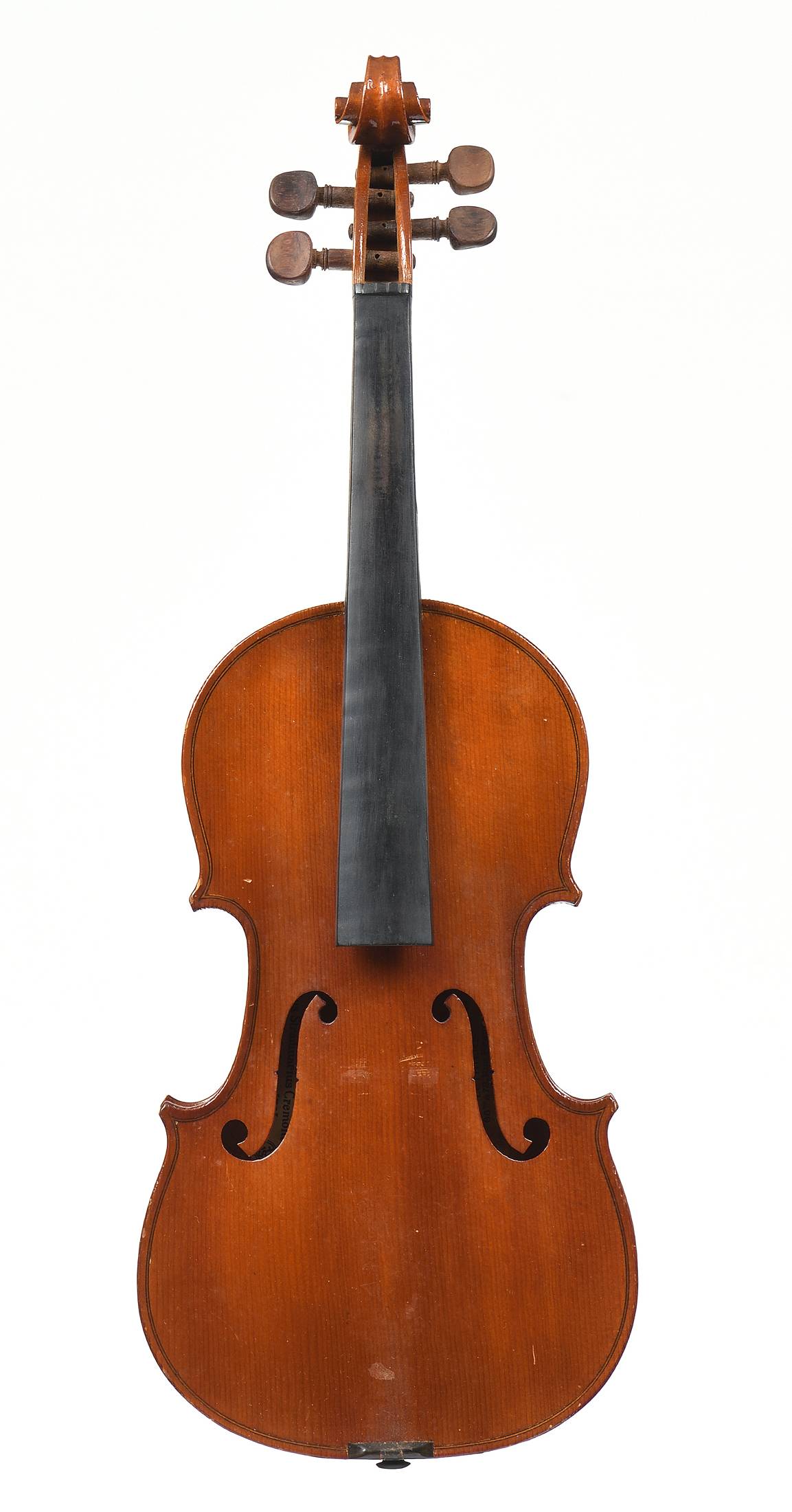 portant une étiquette "Copie de Antonius Stradivarius Cremonensis Faciebat Anno 1721". Fond de deux pièces en érable. Vernis brun orangé sur fond doré. Avec boite et archet.