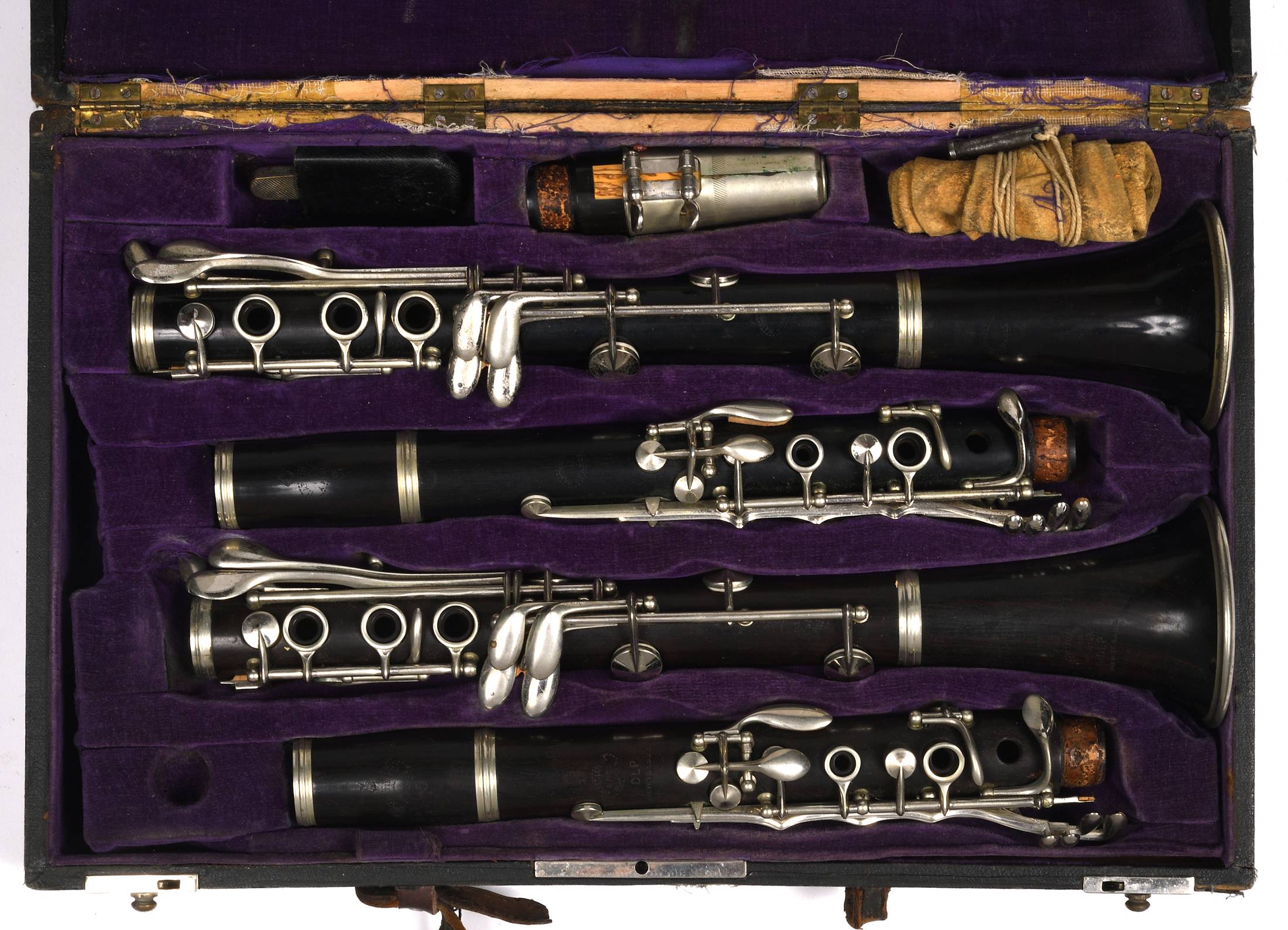 Lot de deux clarinettes portant les marques "BARTLEMY" en La, et "DOLNET" en si Sib. Barillets MARTIN. Bois d'ébène et clefs maillechort. Dans un étui double BUFFET CRAMPON.