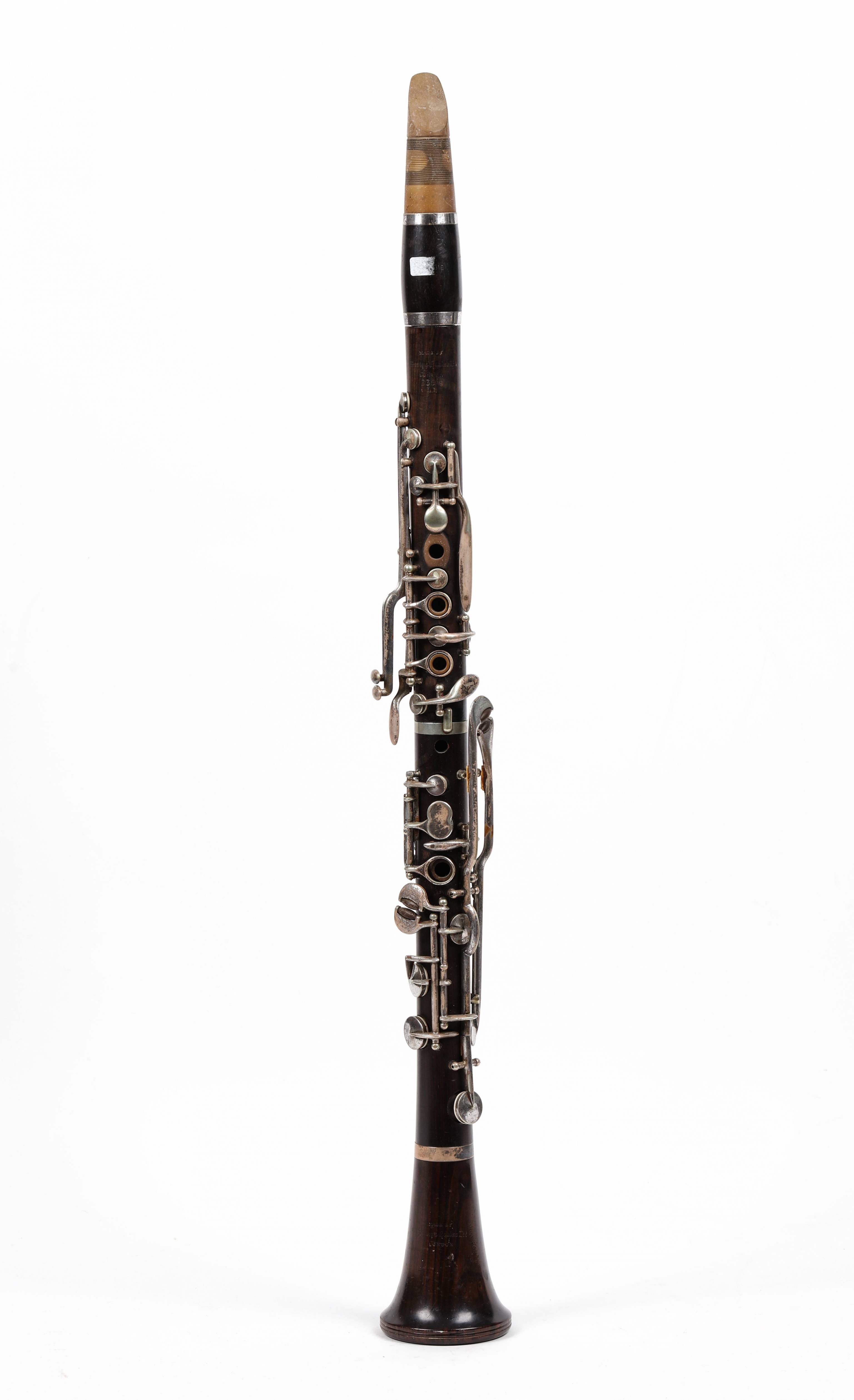 portant la marque "MADE BY BOOSEY & HAWKES... LONDON". En palissandre et clefs en métal argenté. A restaurer.