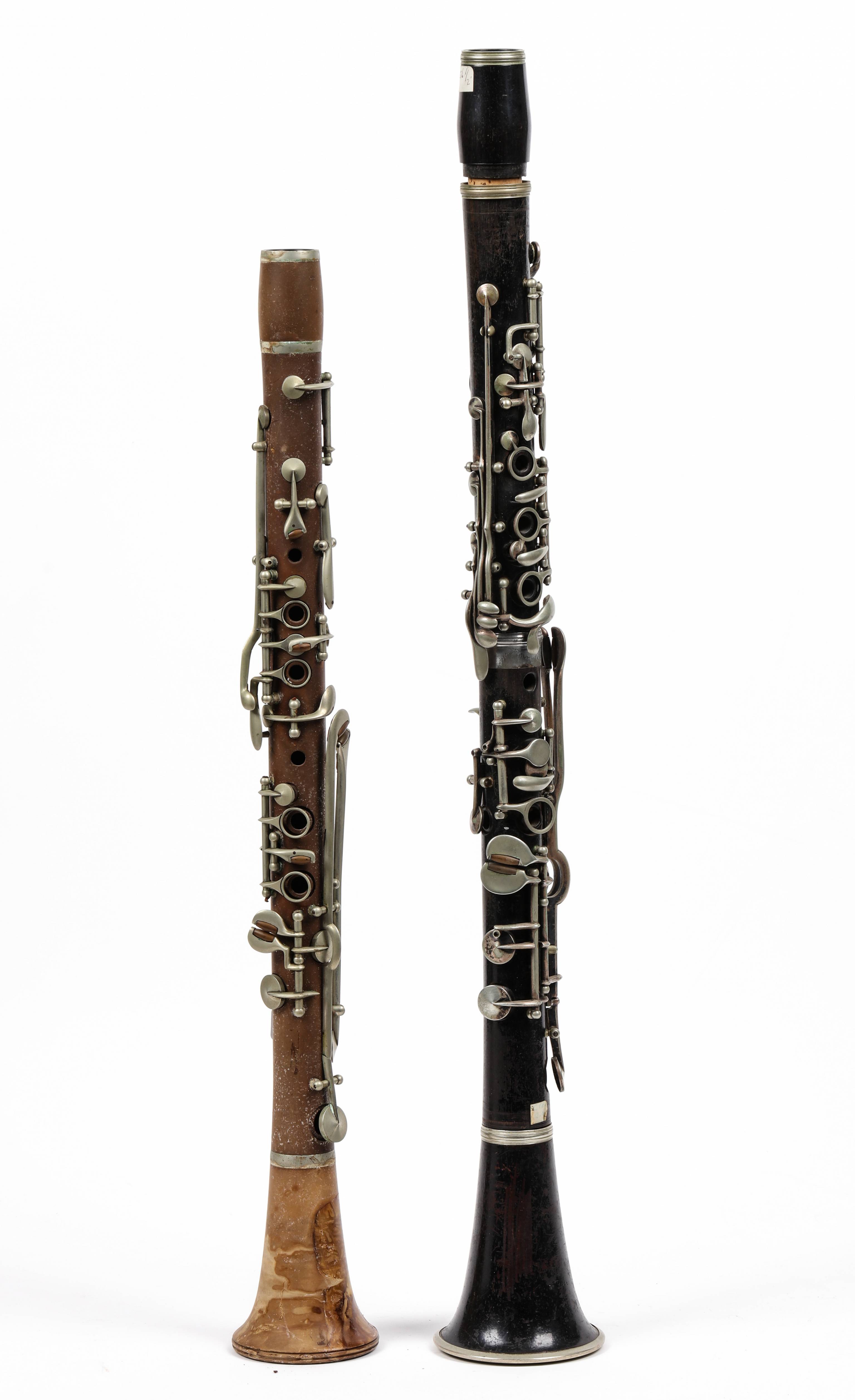 Lot de deux clarinettes dont une en l'état, en bakélite.