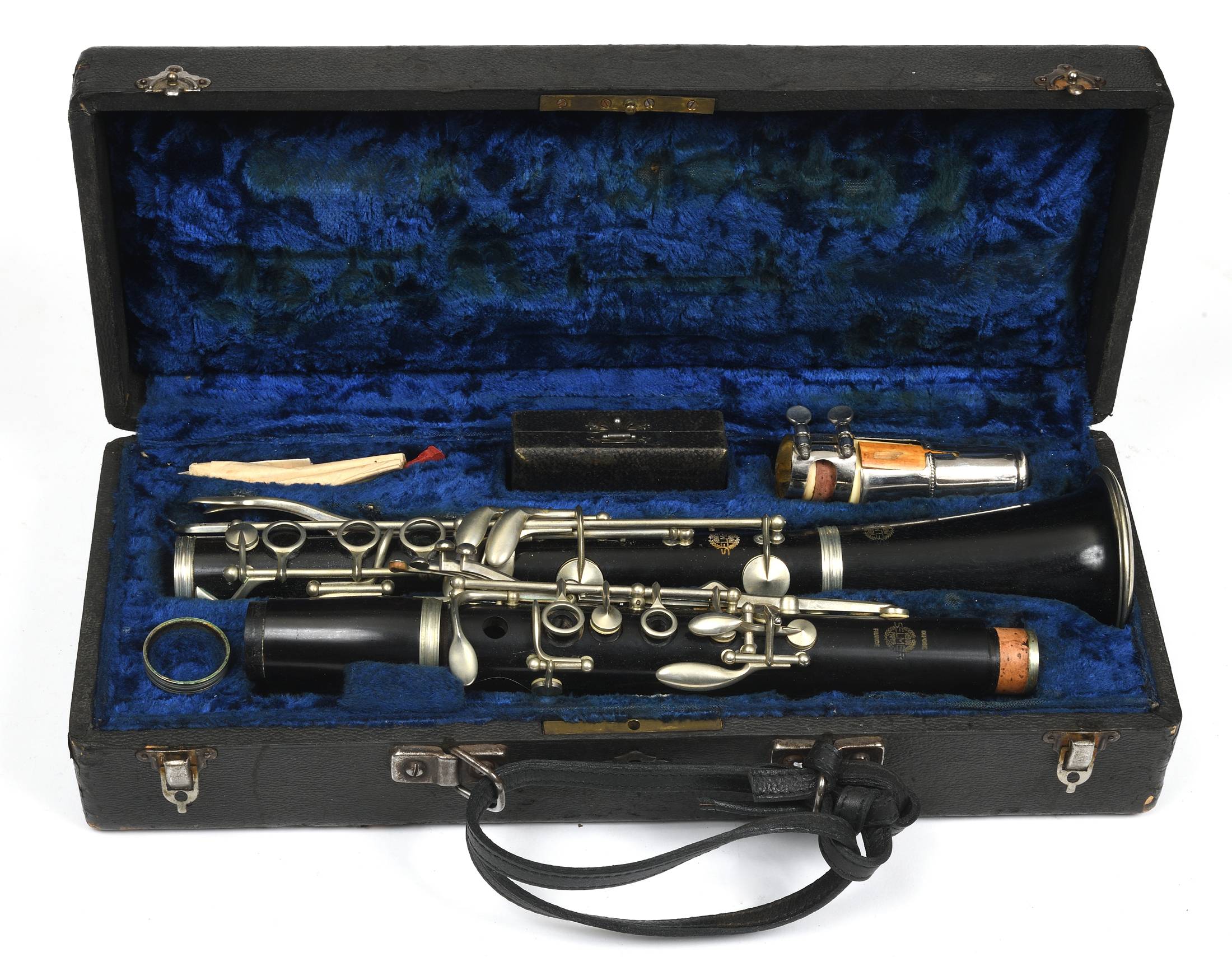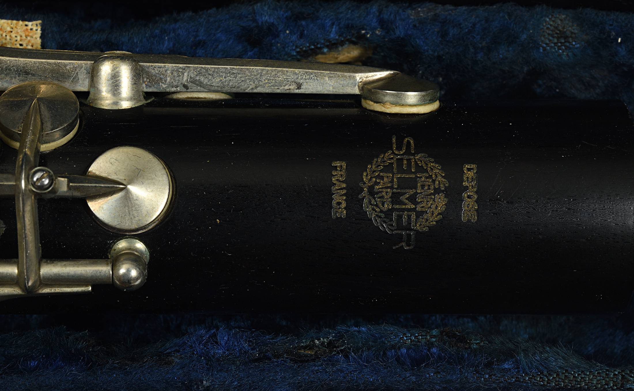 portant la marque "DEPOSE HENRI SELMER PARIS FRANCE". Numéro de série "P6906" MADE IN FRANCE. L'ensemble à restaurer. Maillechort et bois d'ébène.