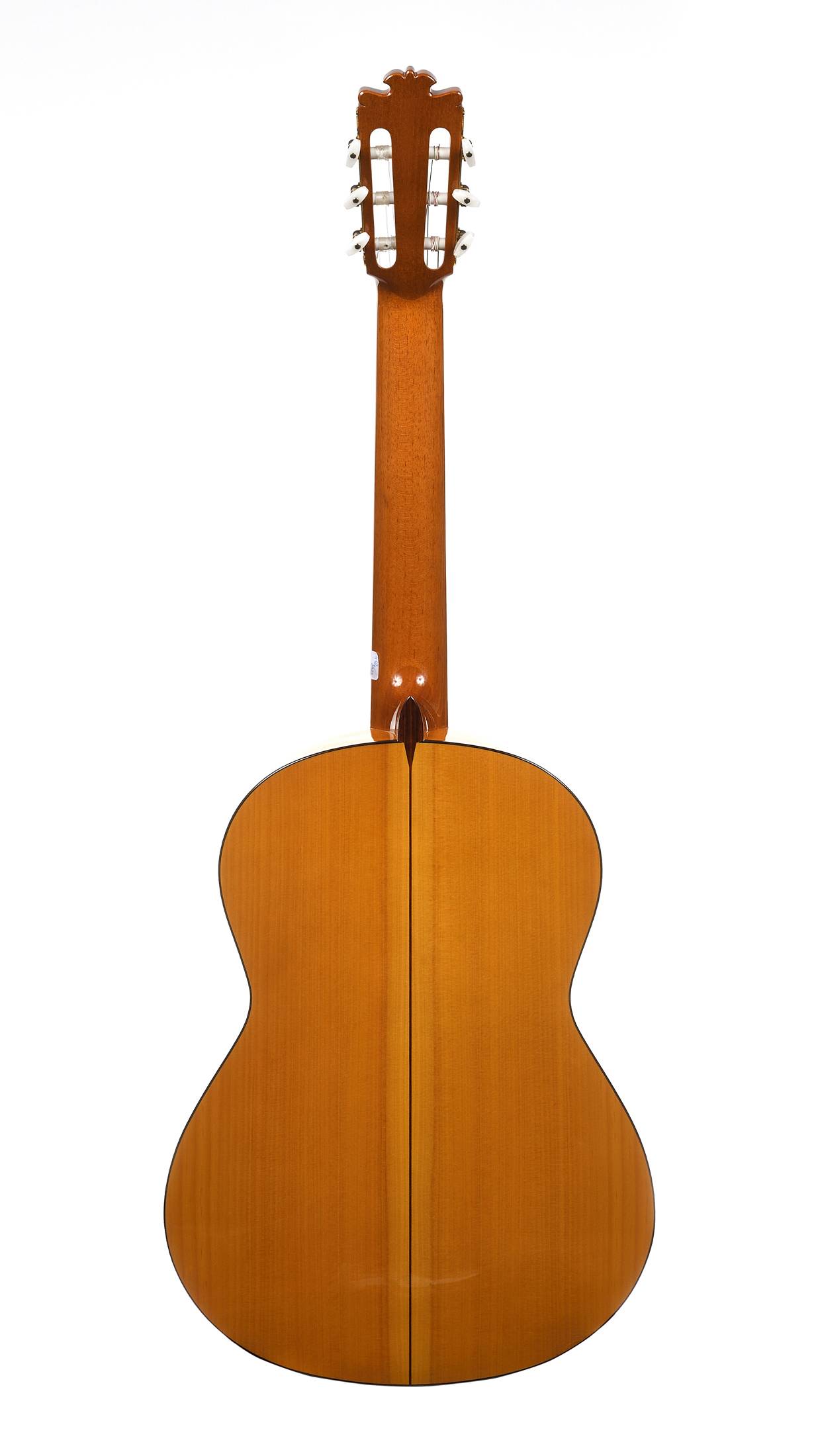 dont elle porte l'étiquette "José NA.VILAPLANA. Espana. N°249. 1985." Signature manuscrite et tampon. Fond de deux pièces en cyprès, éclisses du même bois. Table en épicéa. Avec boite.