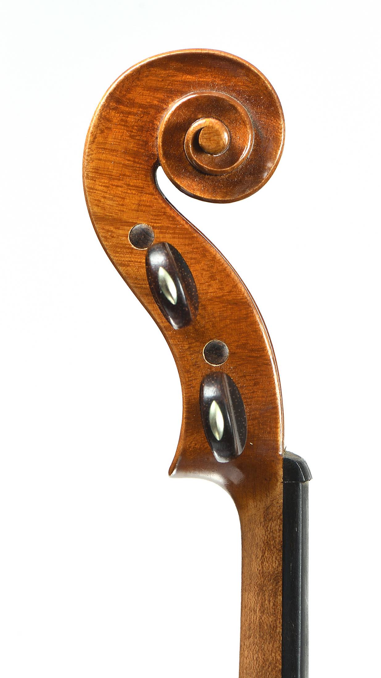 dont il porte la signature manuscrite "R.Morizot 182". Fond de deux pièces en érable. Vernis brun doré. Table en épicéa aux pores larges. 355 mm.