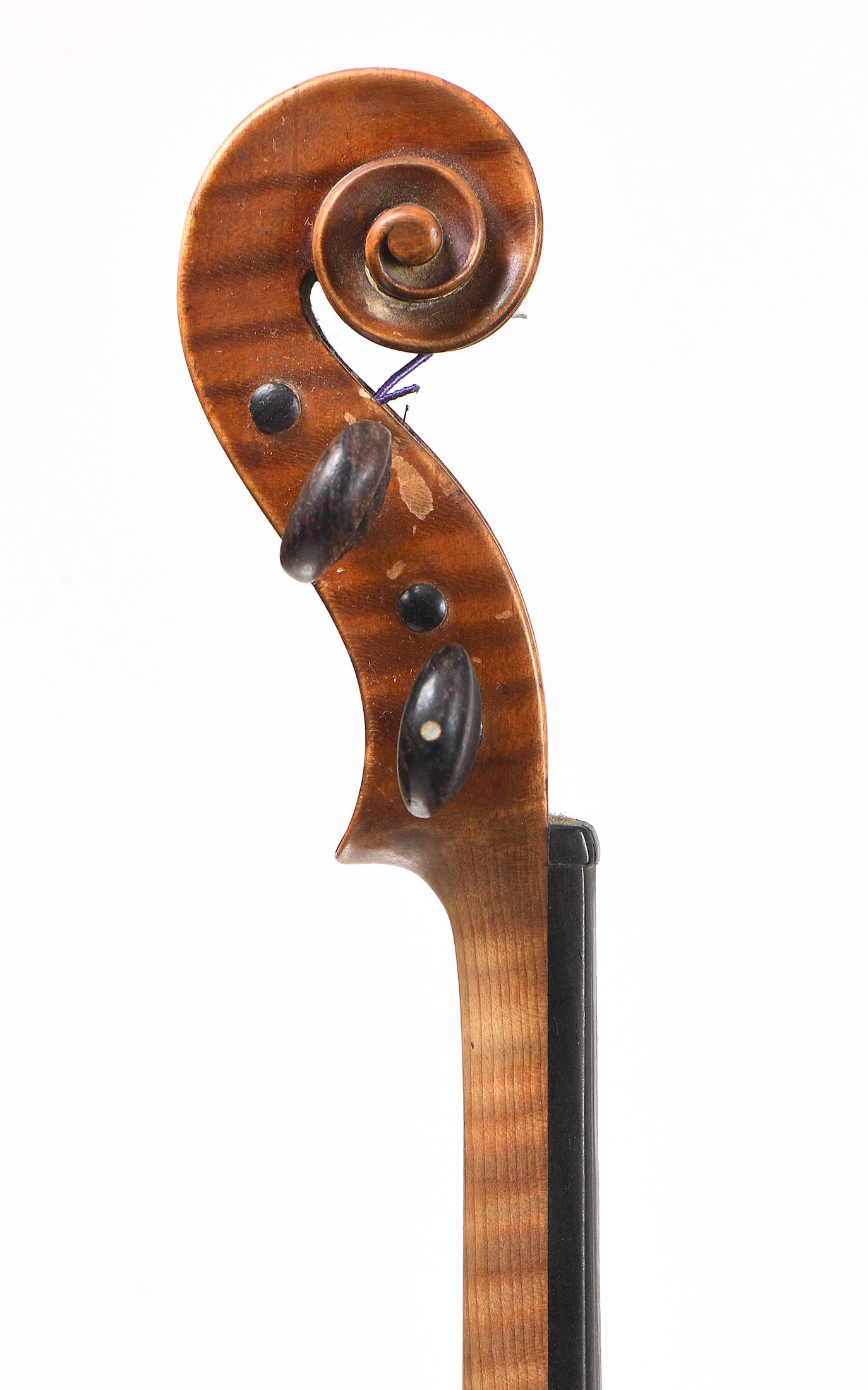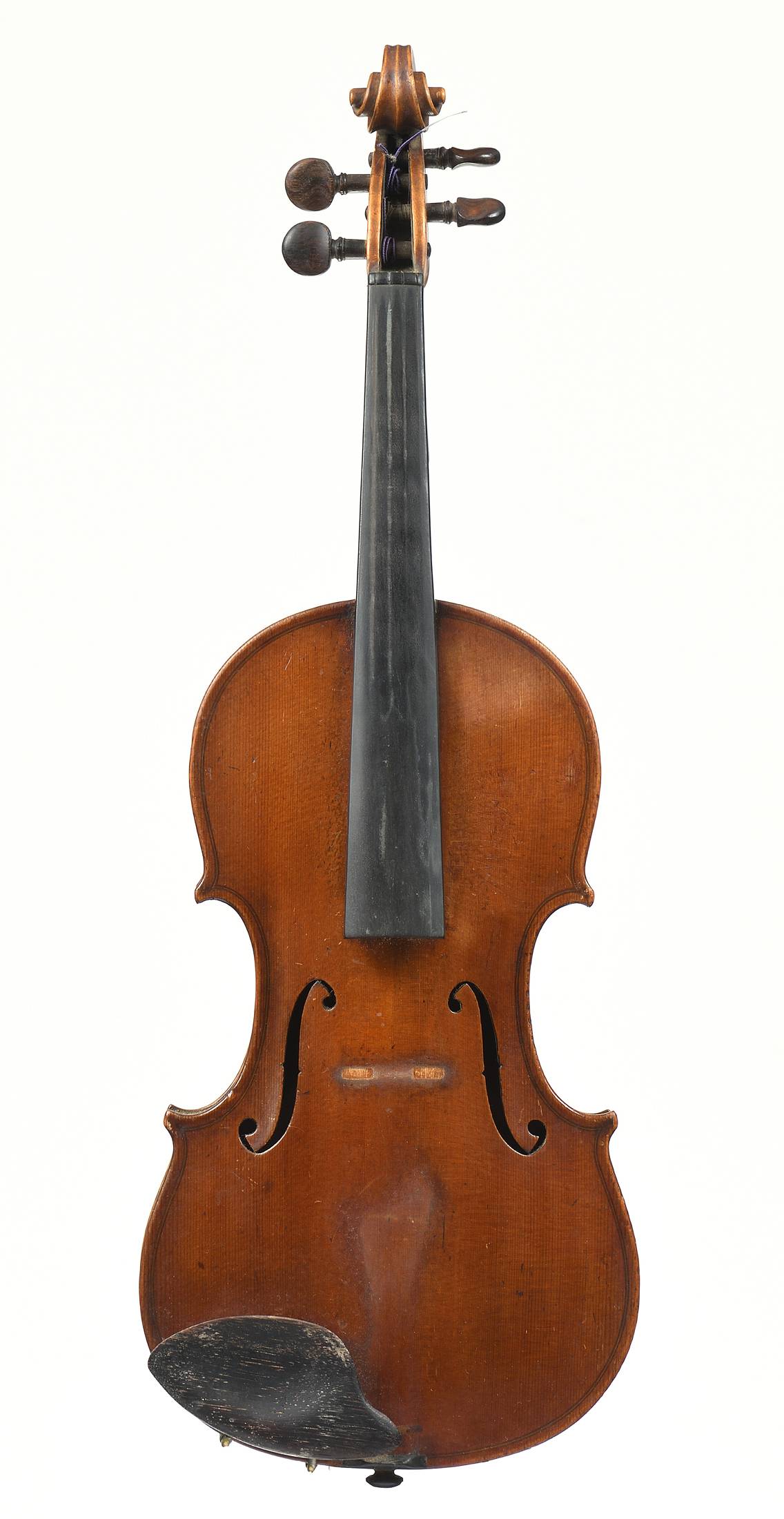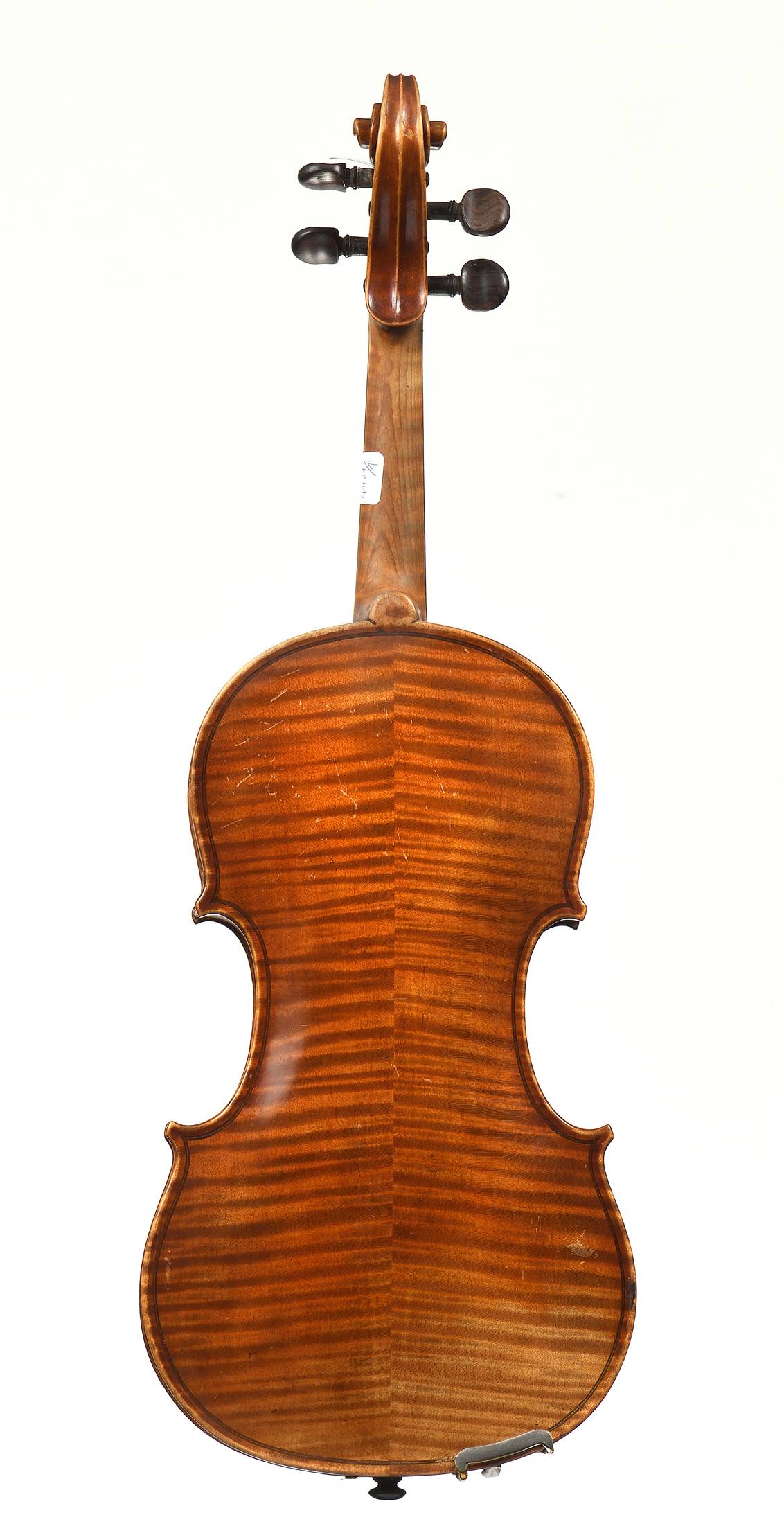 portant une étiquette apocryphe "Guiseppe FIORINI Da Bologna fec in Roma Anno1924". Fait sur un modèle Guarnerius. Fond de deux pièces en érable. Vernis brun sur fond doré. 358 mm.