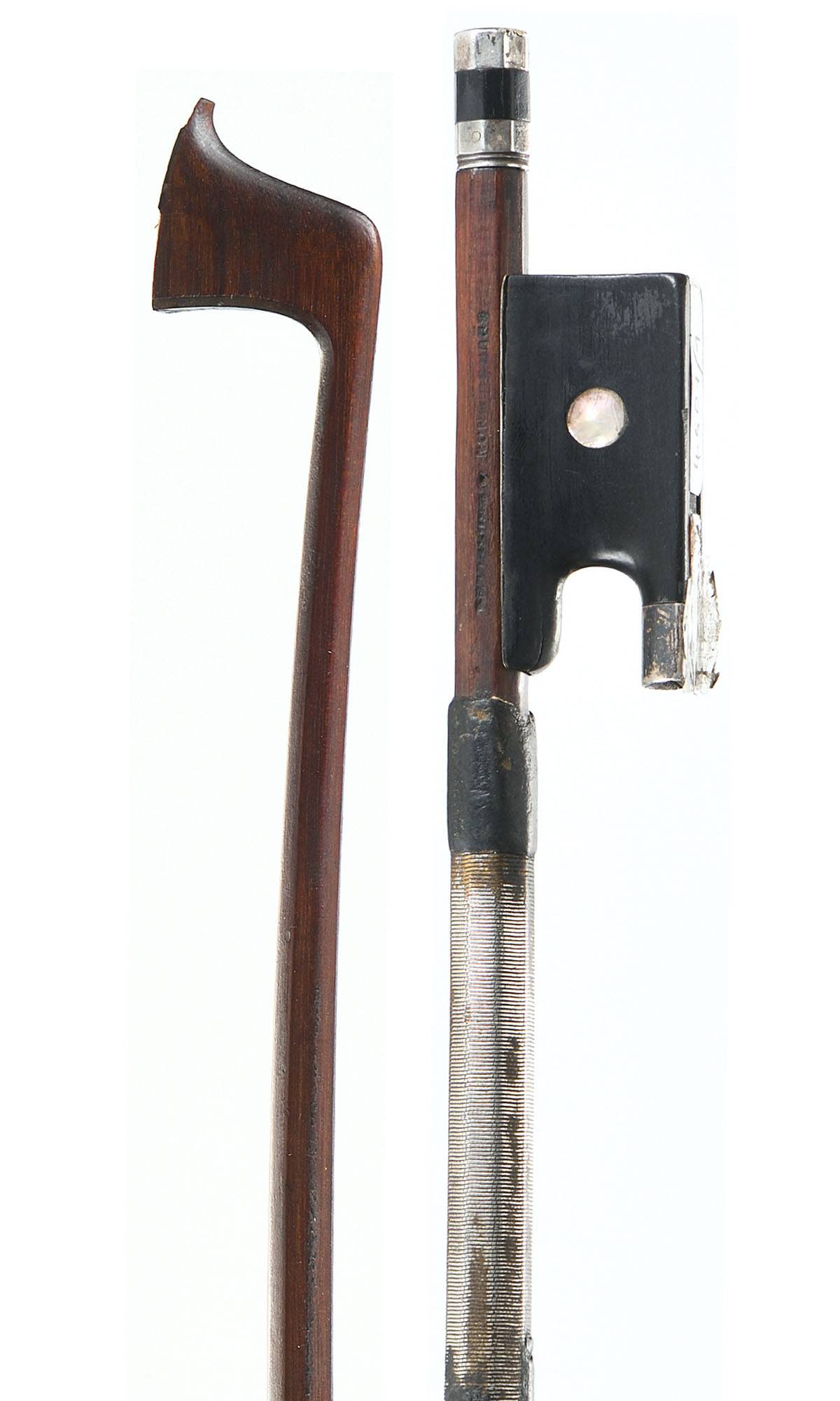 French violin bow probably by Charles Nicolas BAZIN bearing the stamp "BOURGUIGNON A BRUXELLES".