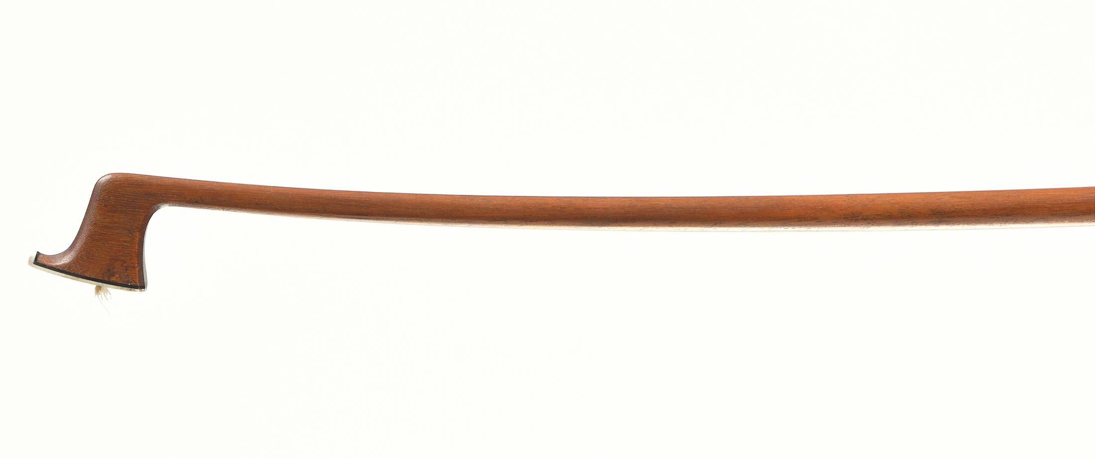 portant la marque au fer apocryphe "C.THOMASSIN A PARIS". Baguette ronde en bois de pernambouc. Hausse ébène, monté argent. 57 g sans mèche. 731 mm.