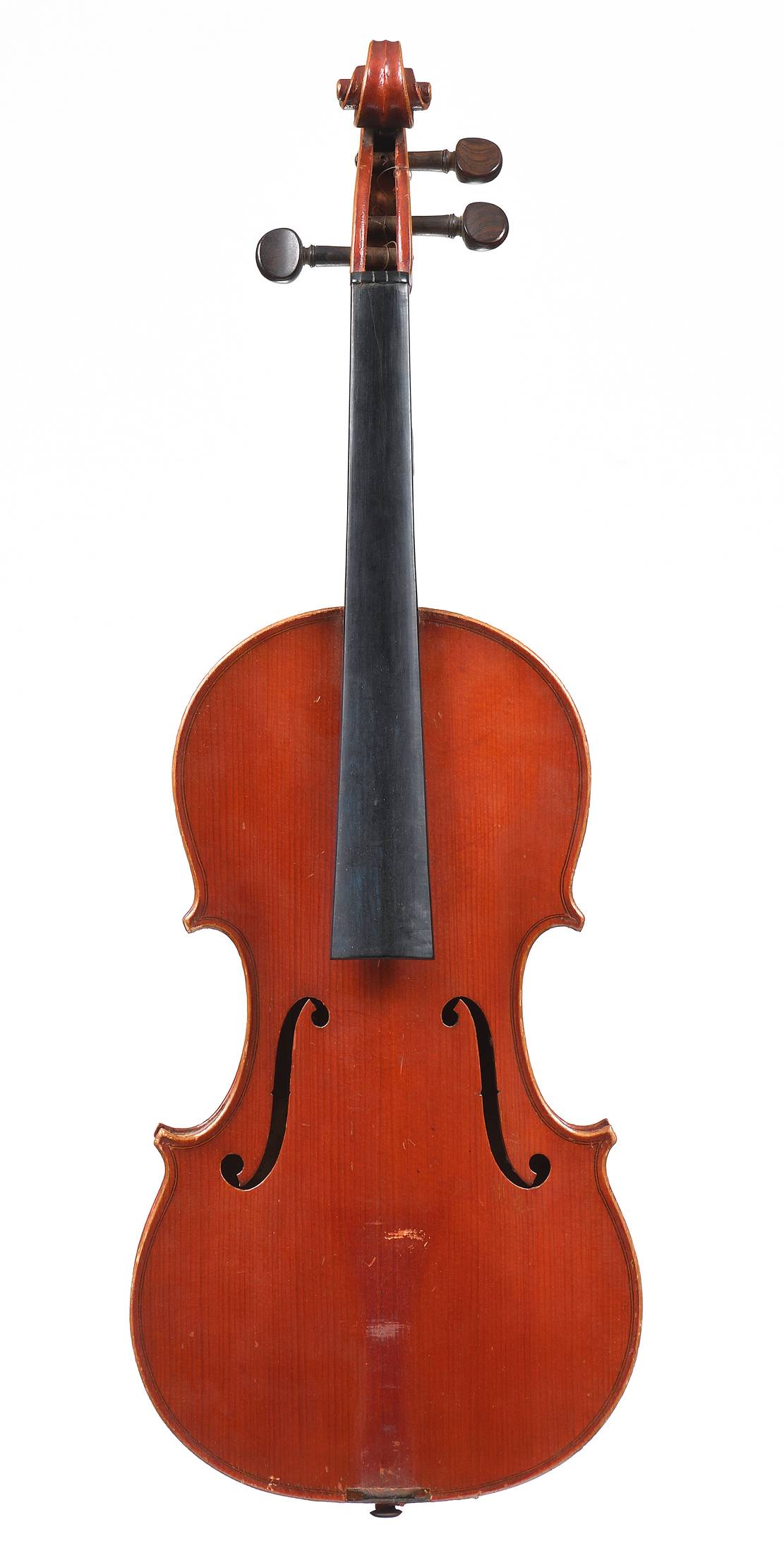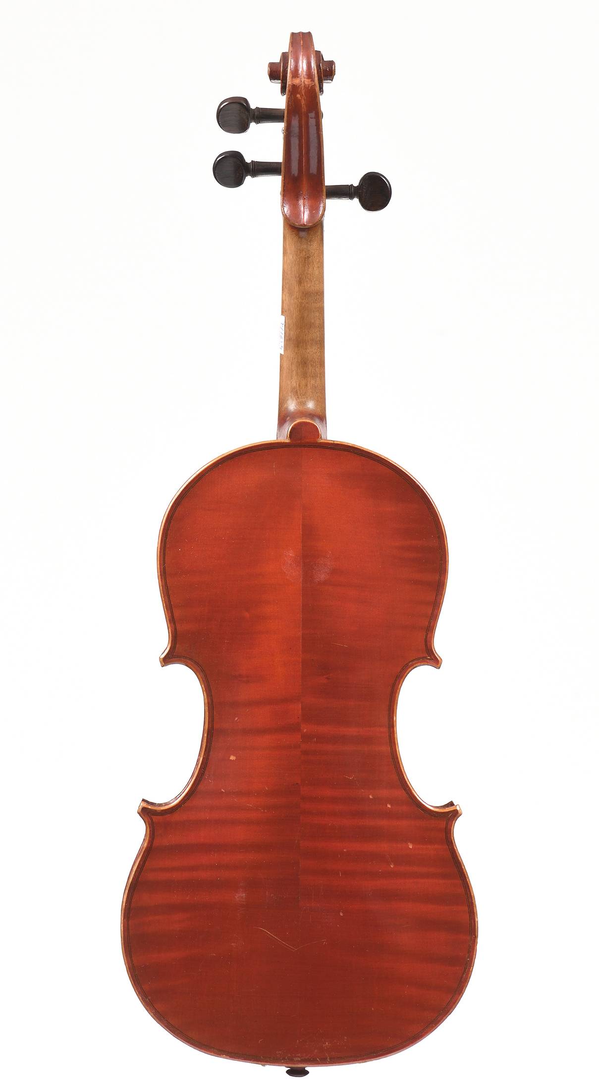 fait sur un modèle Guarnerius dont il porte l'étiquette "Joseph Guarnerius fecit Cremonae anno 17 IHS". Fond de deux pièces en érable. Vernis brun rouge. 359 mm.