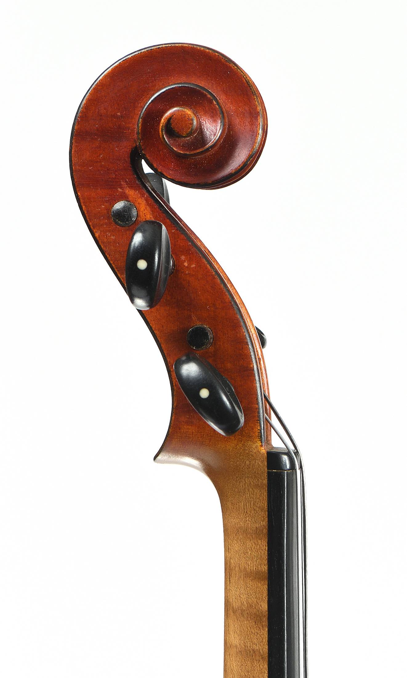 portant une étiquette et marque au fer apocryphes "Charles ENEL. 1927. N°102". Fond d'une pièce en érable. Vernis rouge sur fond doré. 356 mm.