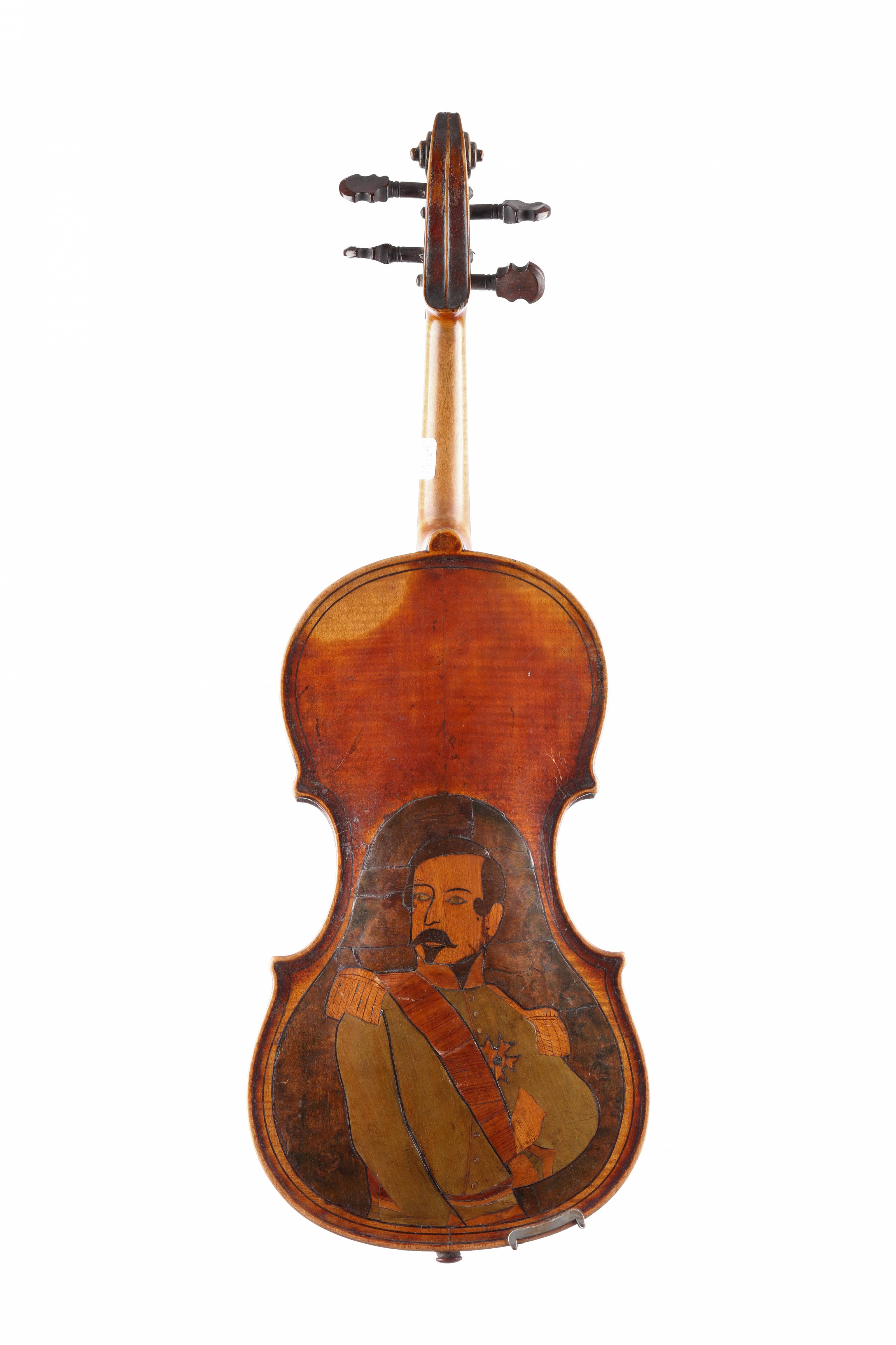 fait sur un modèle MAGGINI dont il porte l'étiquette. Fond sculpté et incrusté, représentant Napoléon III. Portant une étiquette "Maggini Bressia. Anno 1721."
