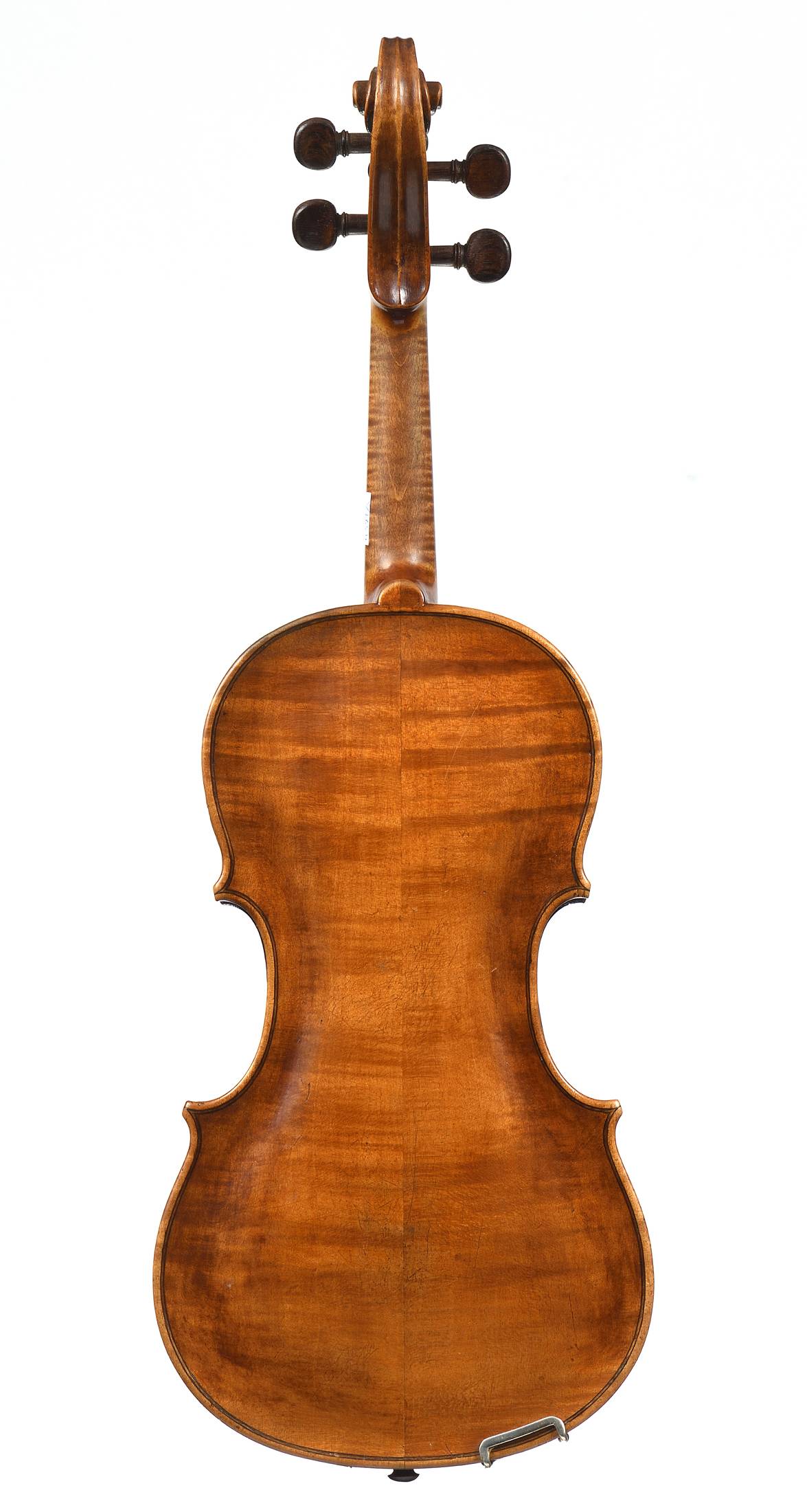 Sans étiquette. Fond de deux pièces en érable. Table en épicéa. Vernis brun doré. 361 mm.